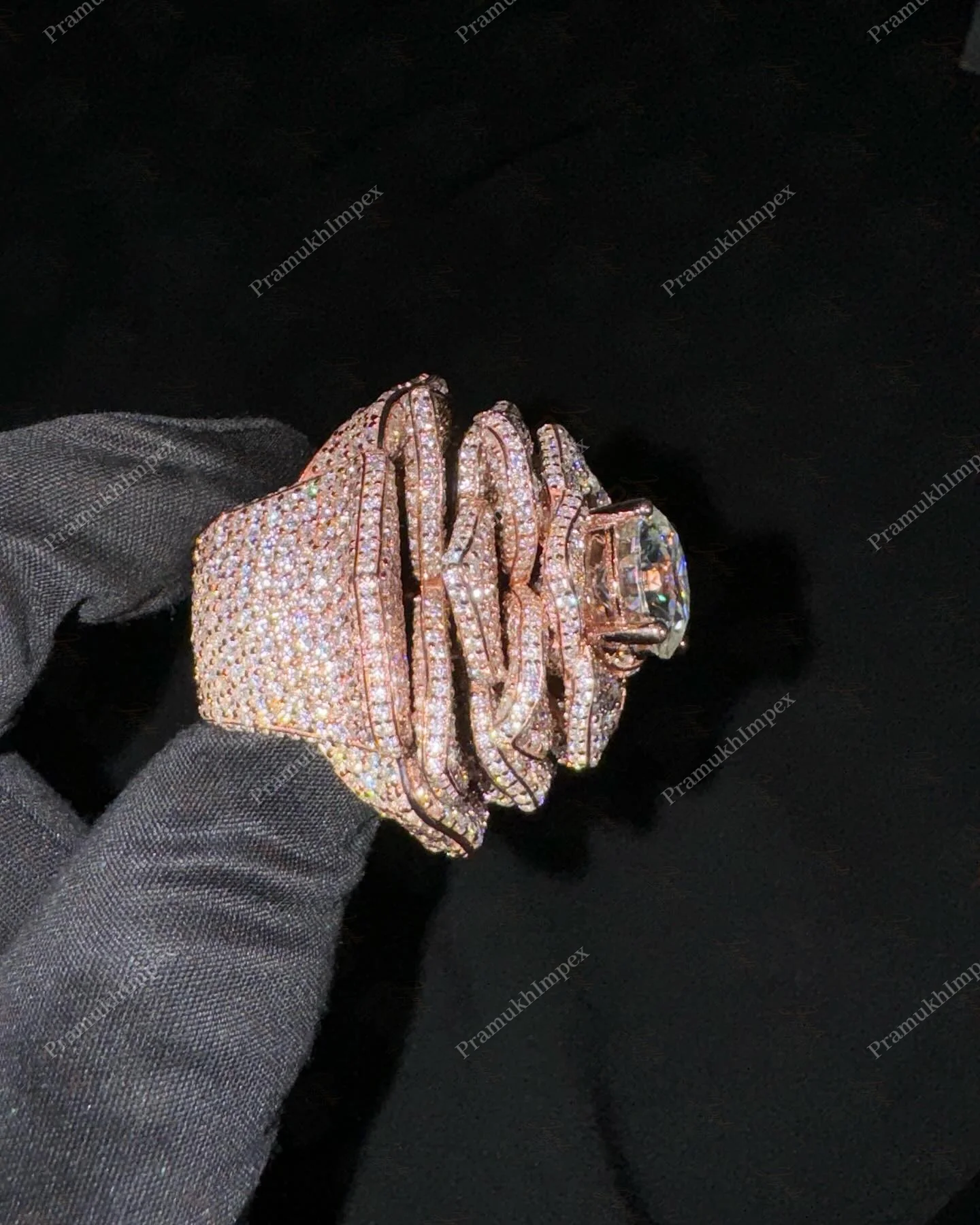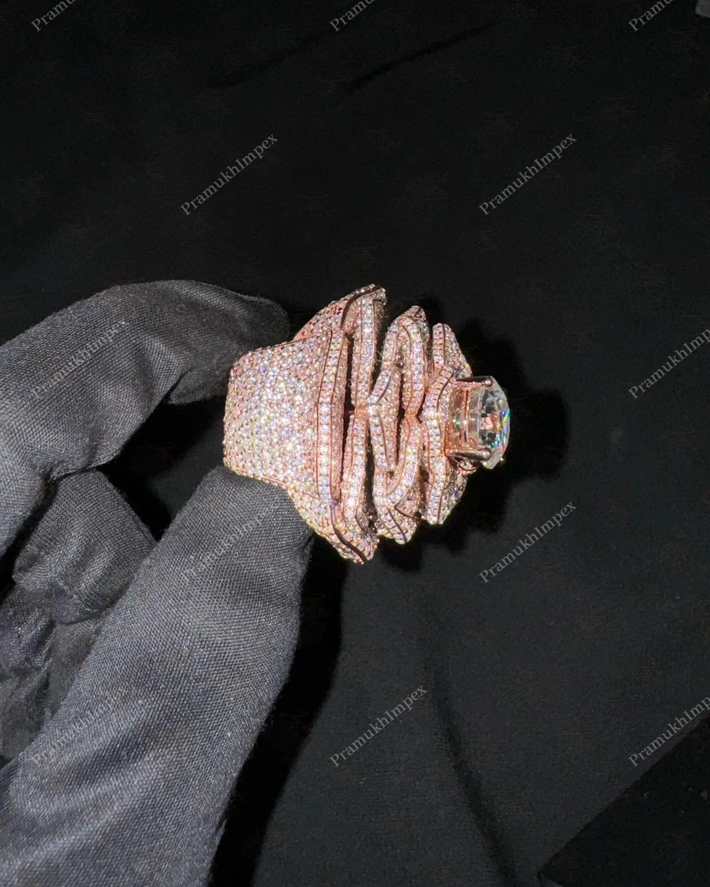 VVS Moissanite Sterling Silver Rose Gold Plated High Quality Hip Hop Flower Ring Indian Suppliers Wholesale Price