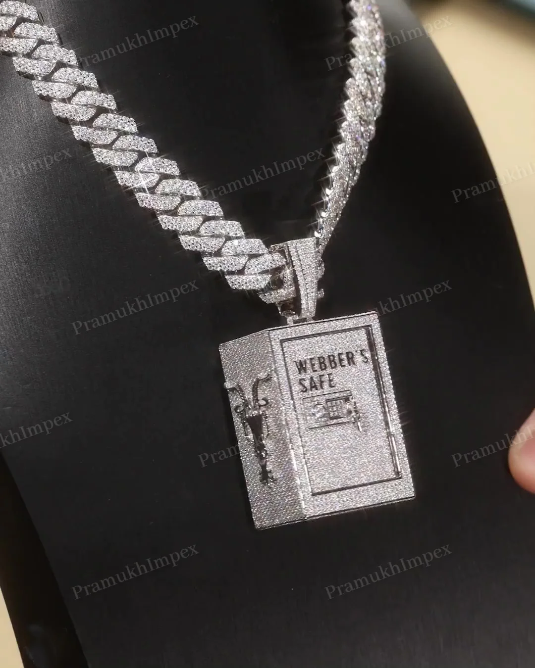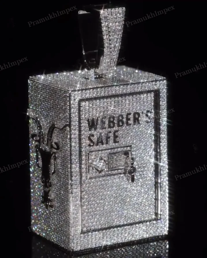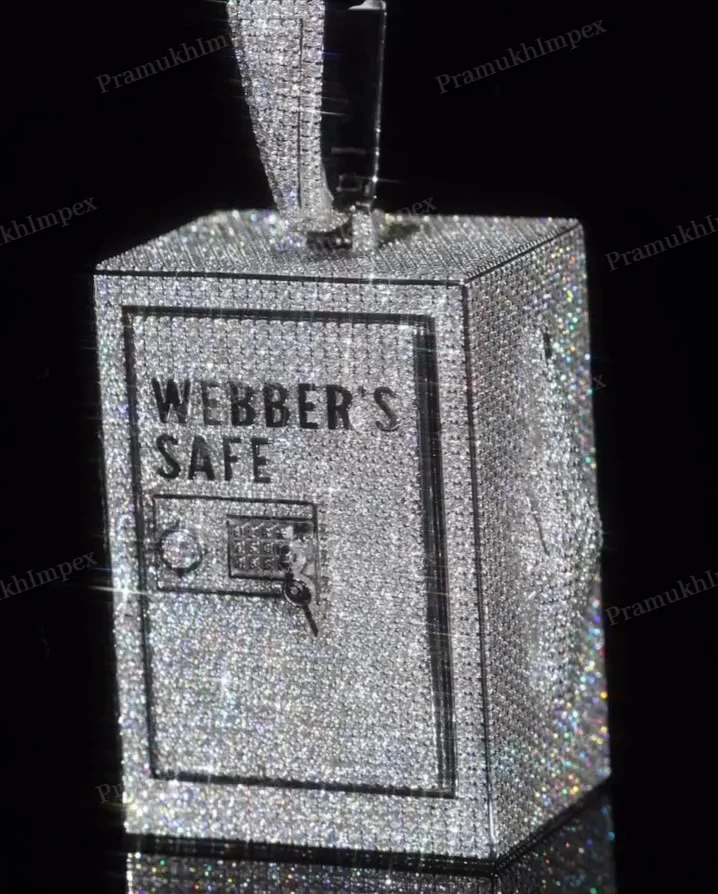 Trendy Sterling Silver Custom Made Box Style Pendant Full White Iced Out Moissanite Locker Pendant GRA Certified Diamond Jewelry