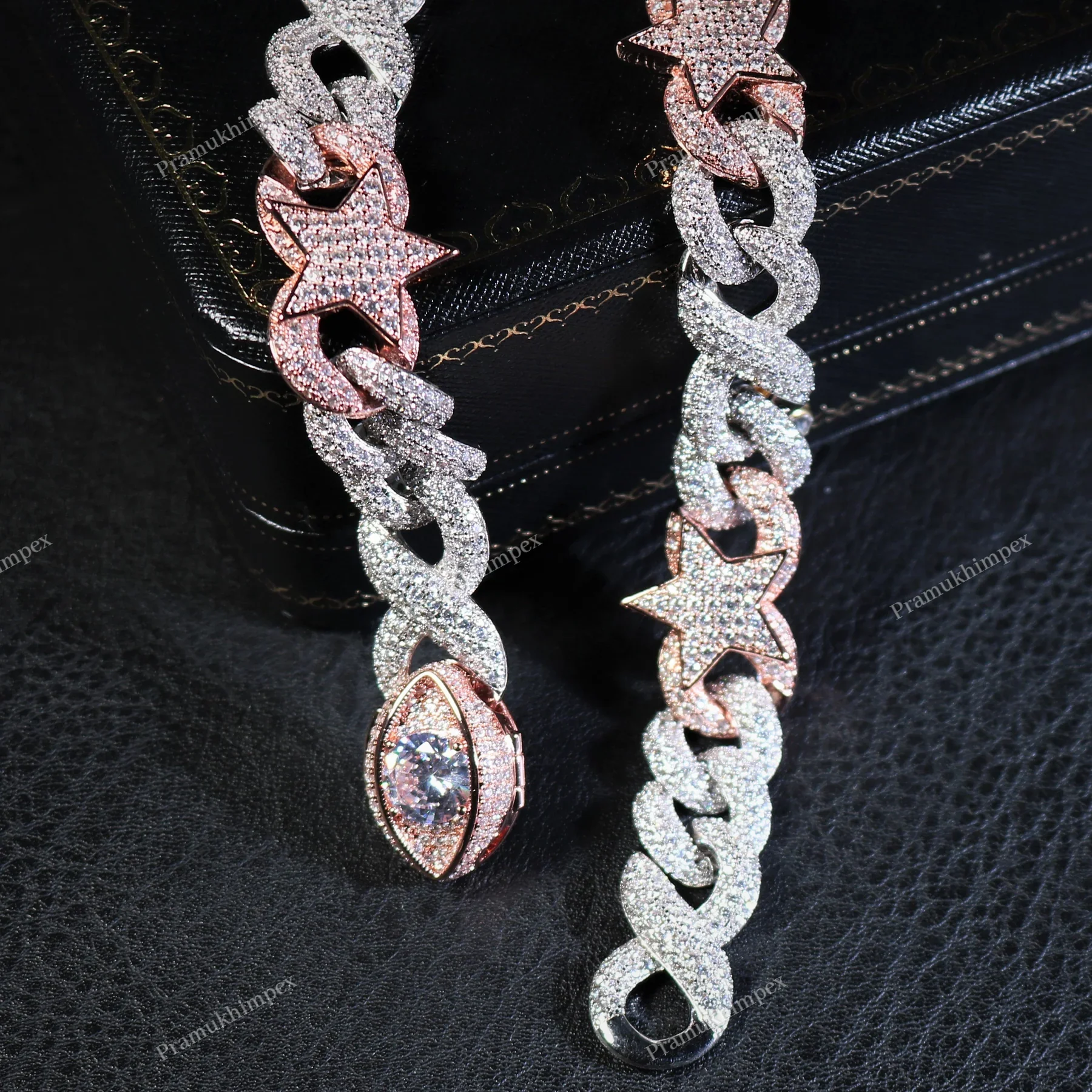 Custom 15 mm Diamond Star Infinity Link Chain Two Ton Classic Design 925 Sterling Silver Hip Hop Rapper Style Moissanite Jewelry