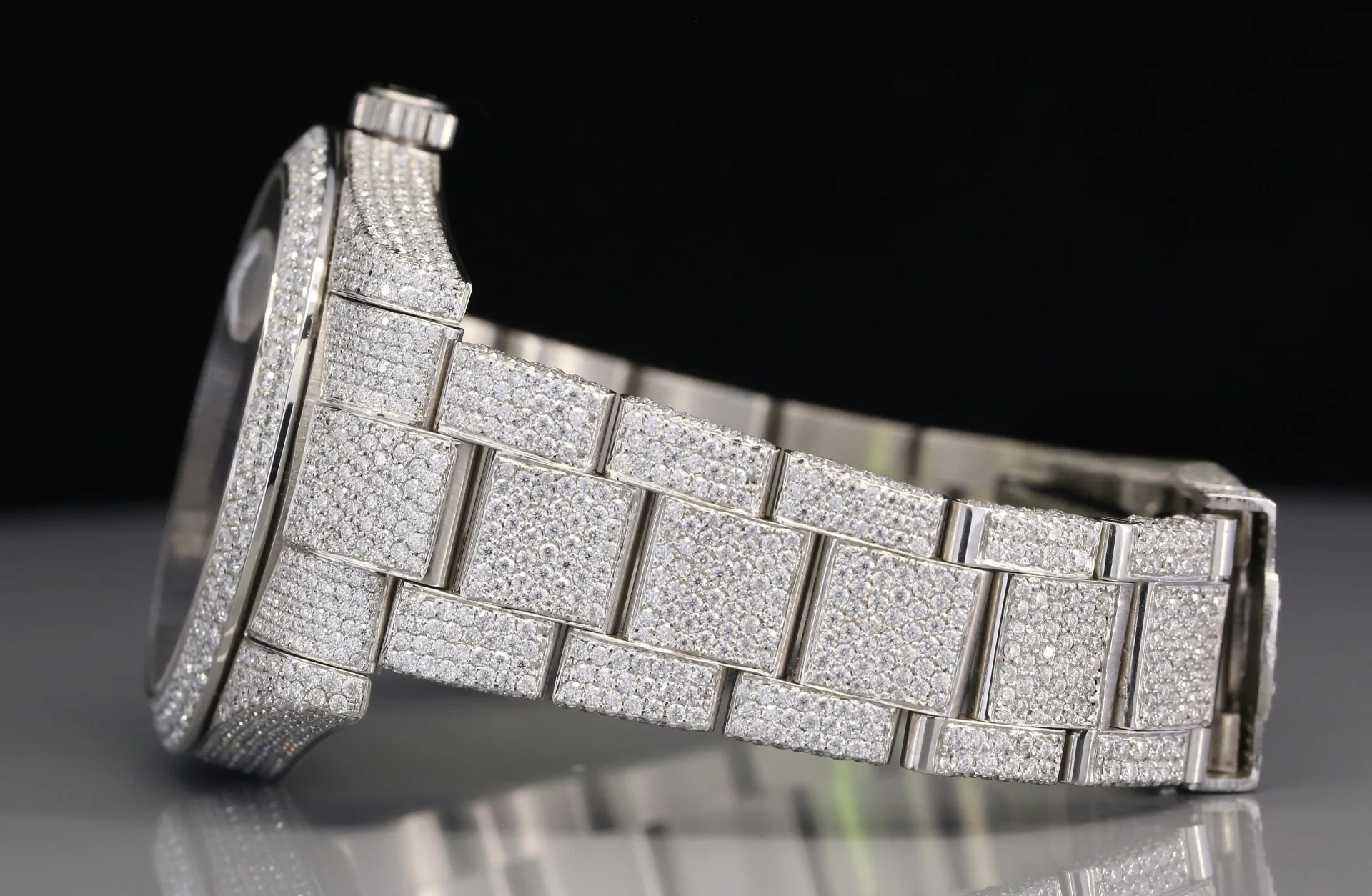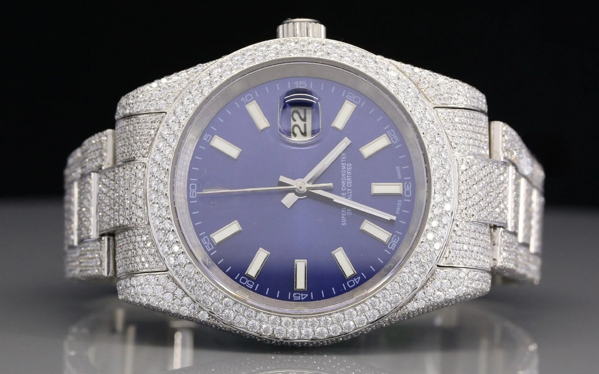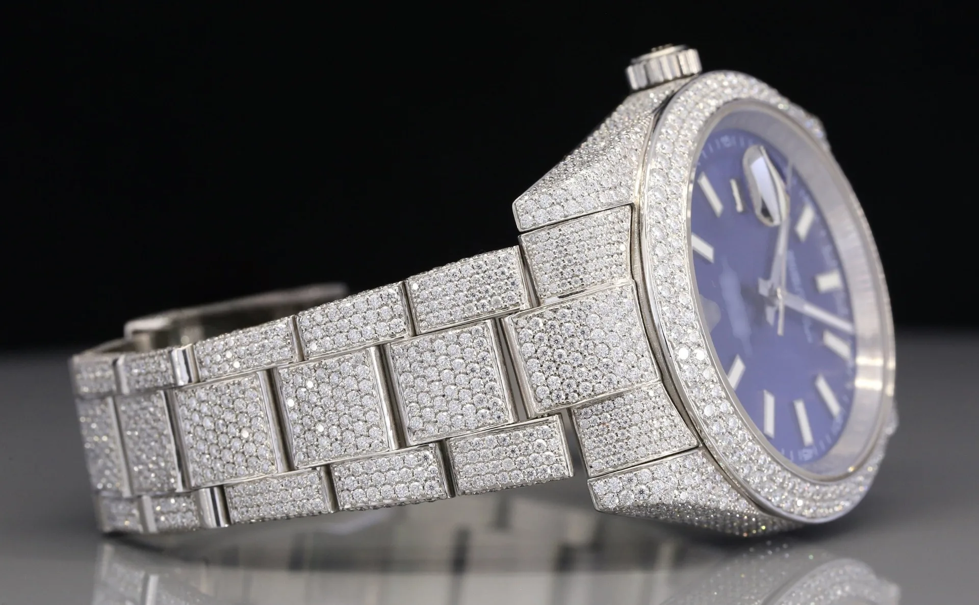 Beautiful Blue Dial White Moissanite Stainless Steel Luxury Watch Hip Hop Iced Bust Sterling Silver Fashion Business Mechanical