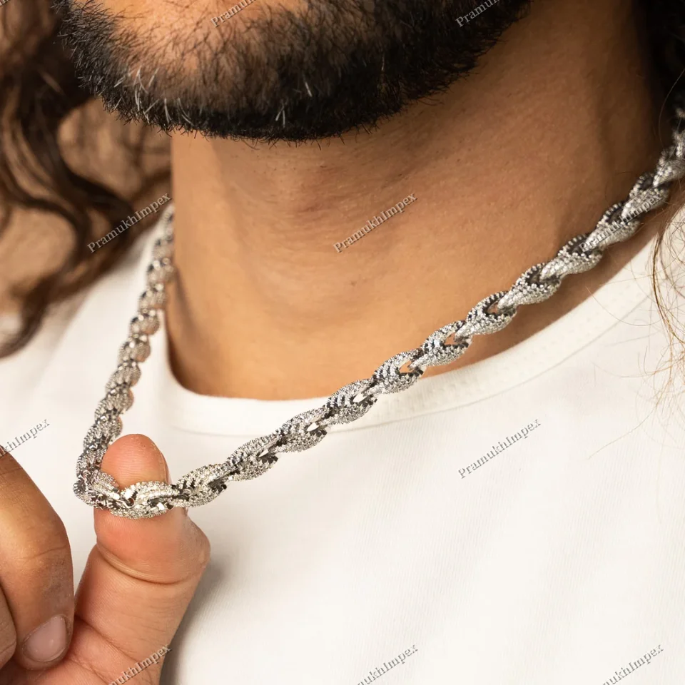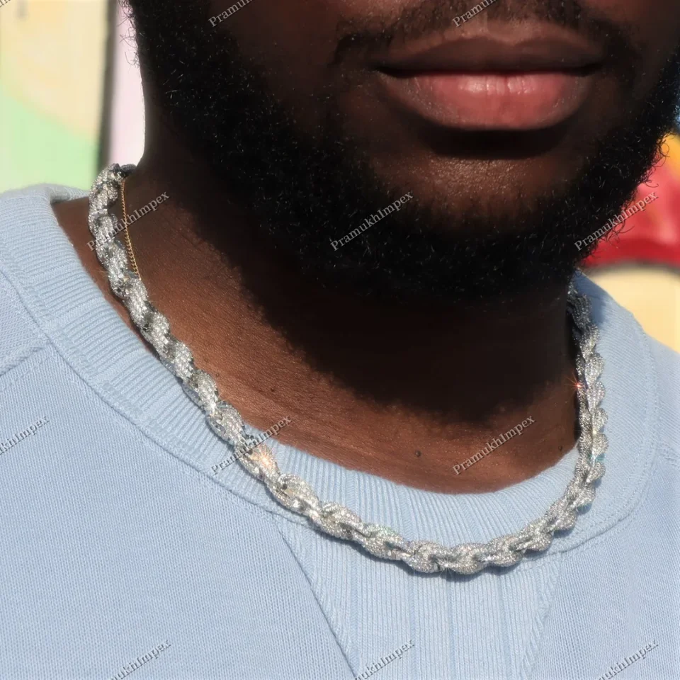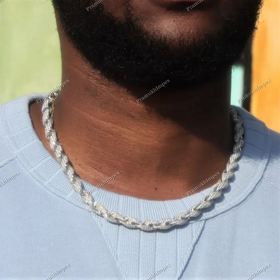 10mm Iced Out Cuban Chain Sterling Silver Moissanite Hip Hop 24 Inch White Gold Plated Men's Jewelry From India