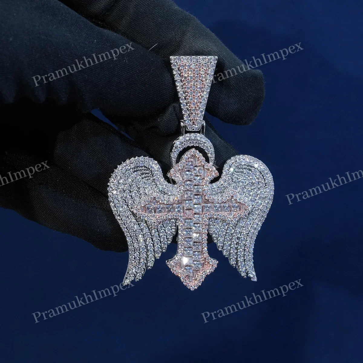 Moissanite Diamond Angel Cross Pendant Gold Plated Iced Wing Charm Necklace Custom Hip Hop Jewelry Party Unisex