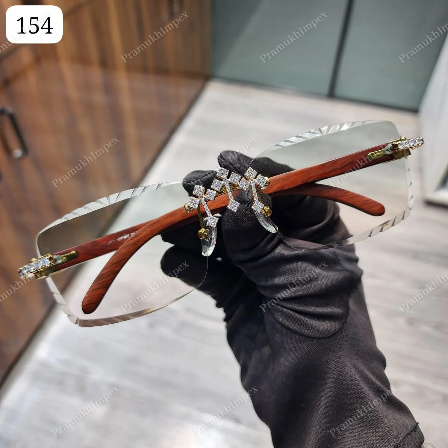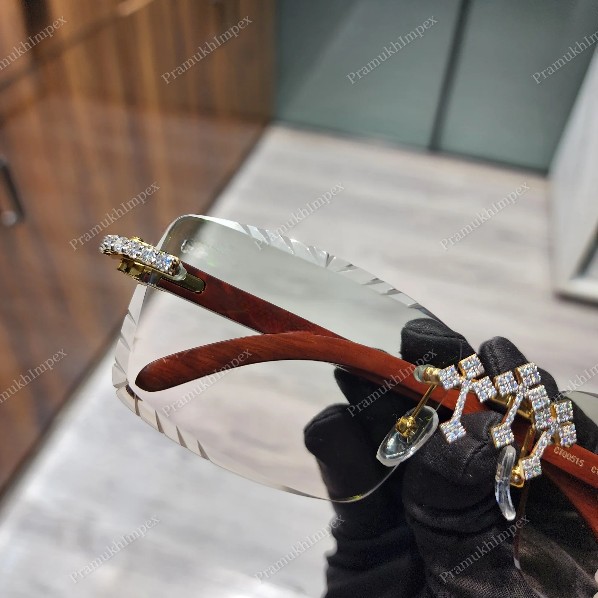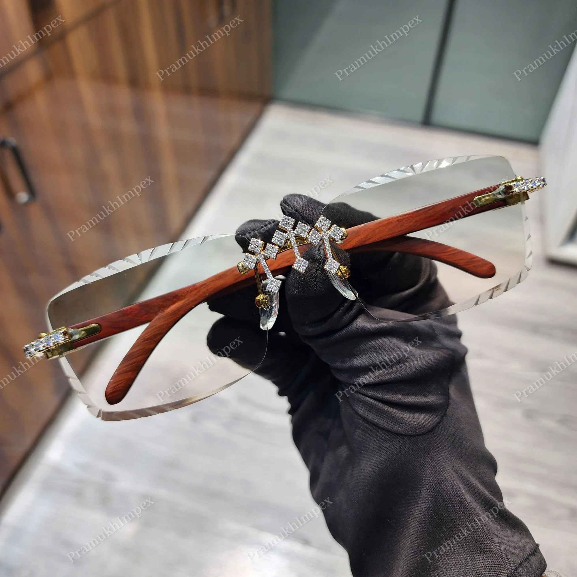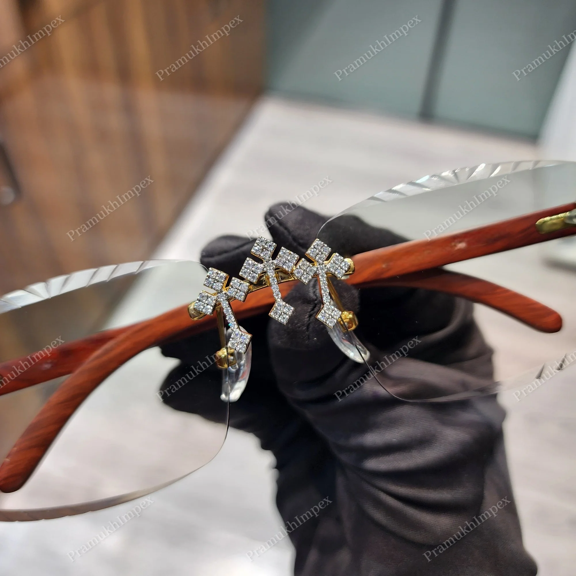 Customized Transparent Green Moissanite Cross Design Light Weight Sunglasses for Men with UV Protection Luxury Box Packaging
