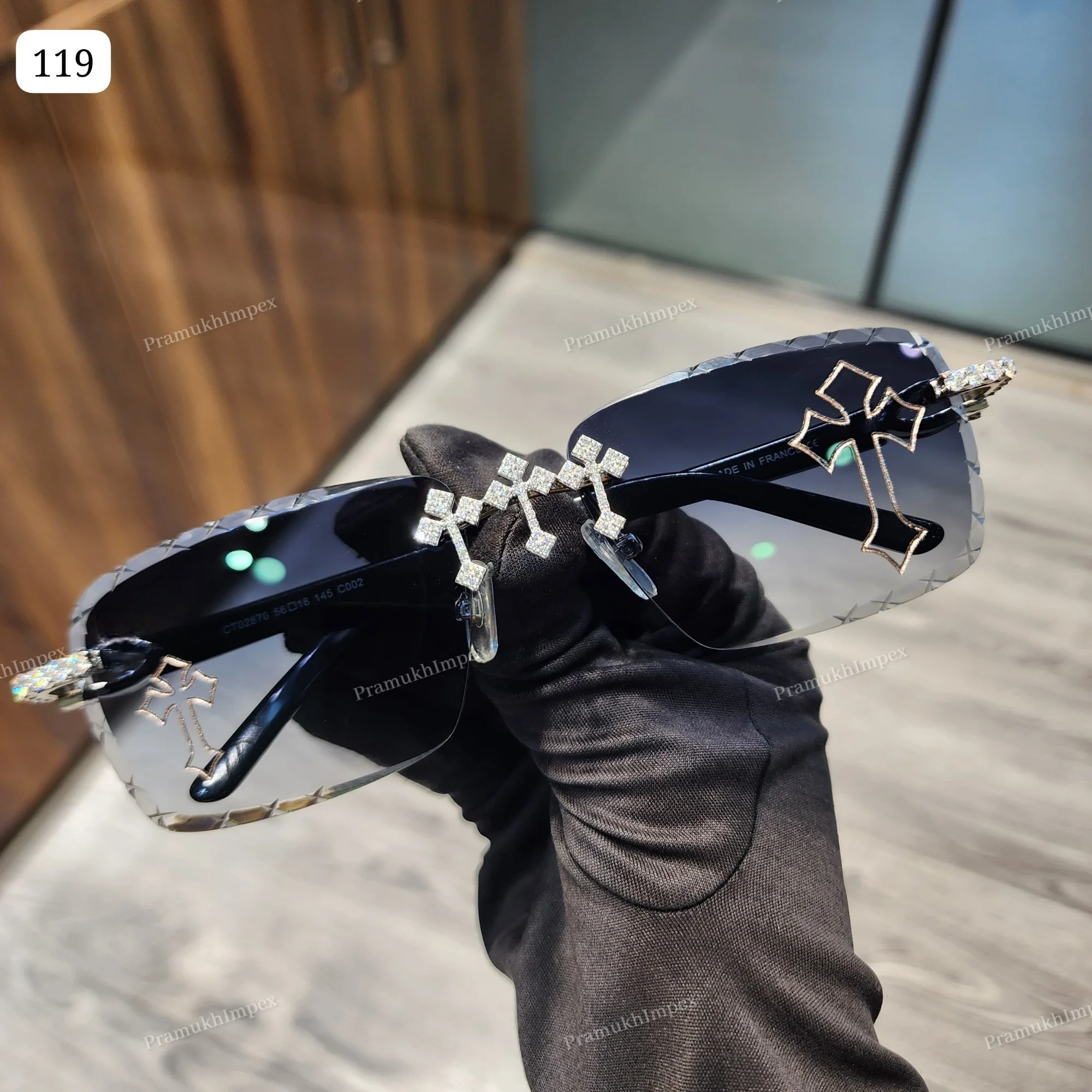 Hip Hop Moissanite Diamond Iced VVS D Cross Design Purple Glass Lenses Sunglasses Indian Suppliers Fashion Jewelry Men