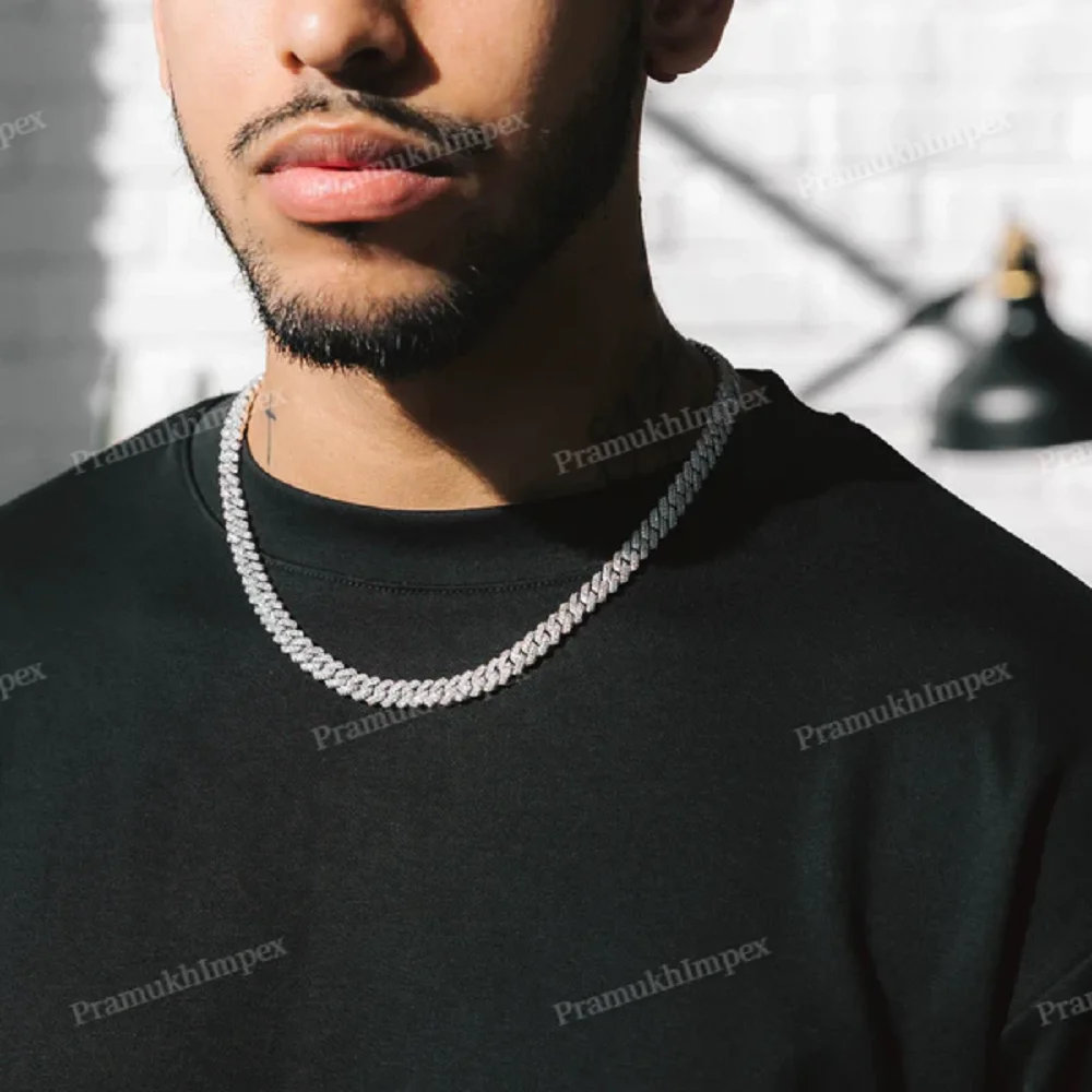 New Fashion Hip Hop Moissanite 8 MM Round Cut Cuban Chain for Men's 18K White Gold Iced Out Jewelry Box Packaging