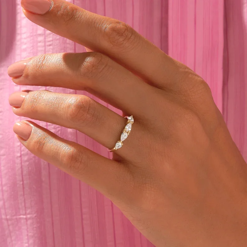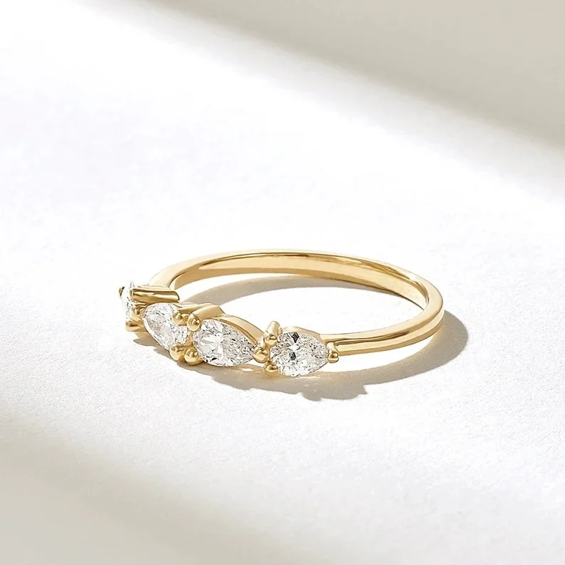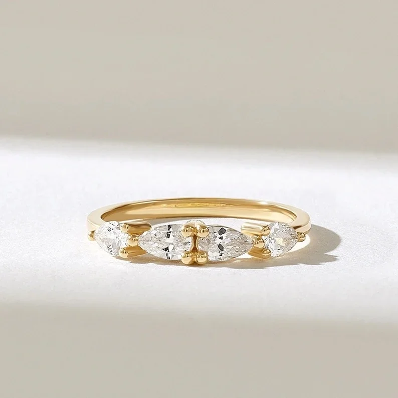 East West Tear Drop Lab Grown Diamond Vintage Style for Certified Wedding Ring Band Prong Setting Wholesale Price Made Indian