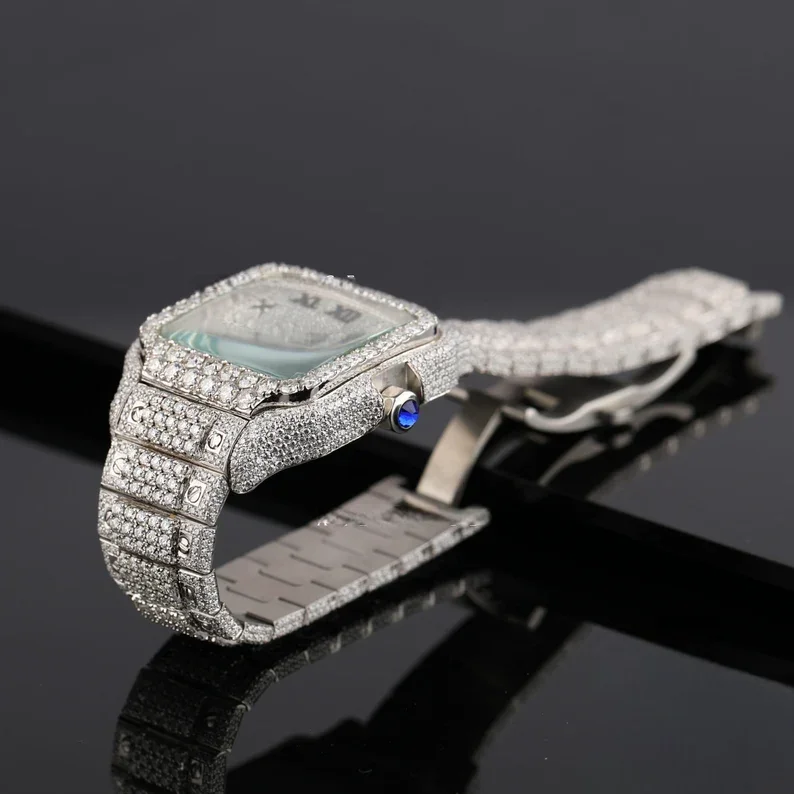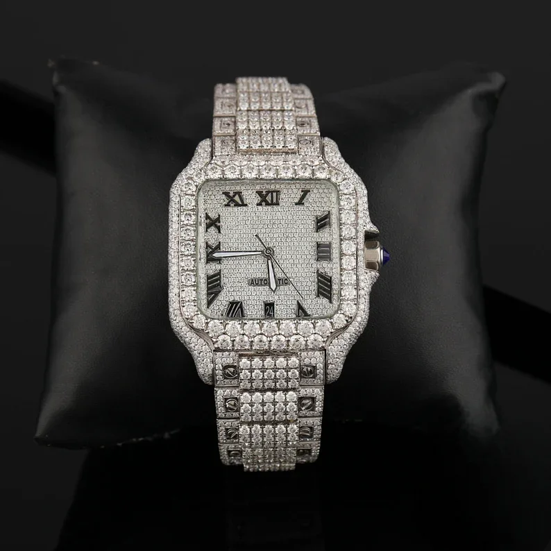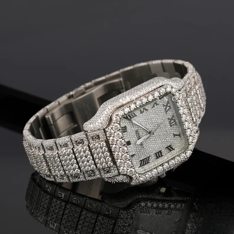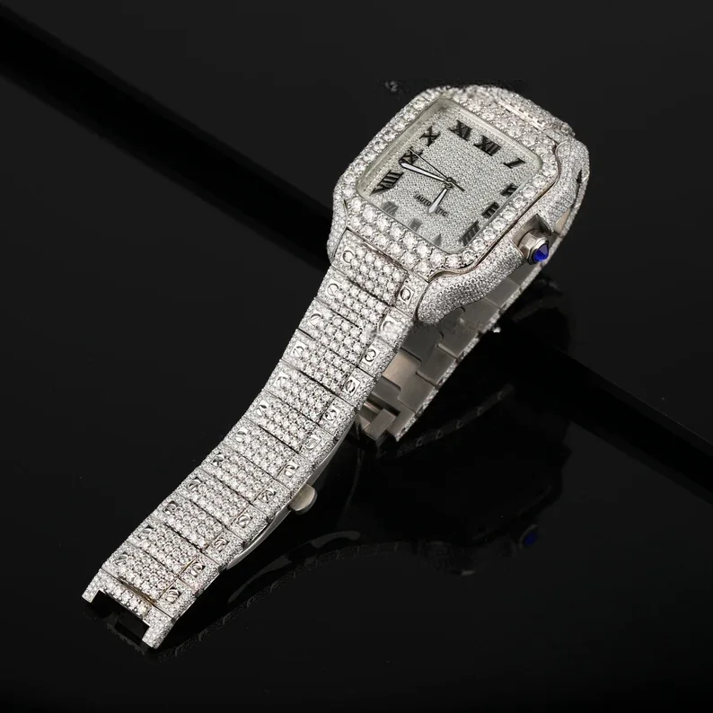 Fully Iced High Antique Fashion Luxury Stainless Steel Watch Unisex Handmade Setting Pass Diamond Tester Roman Dial Wrist Watch