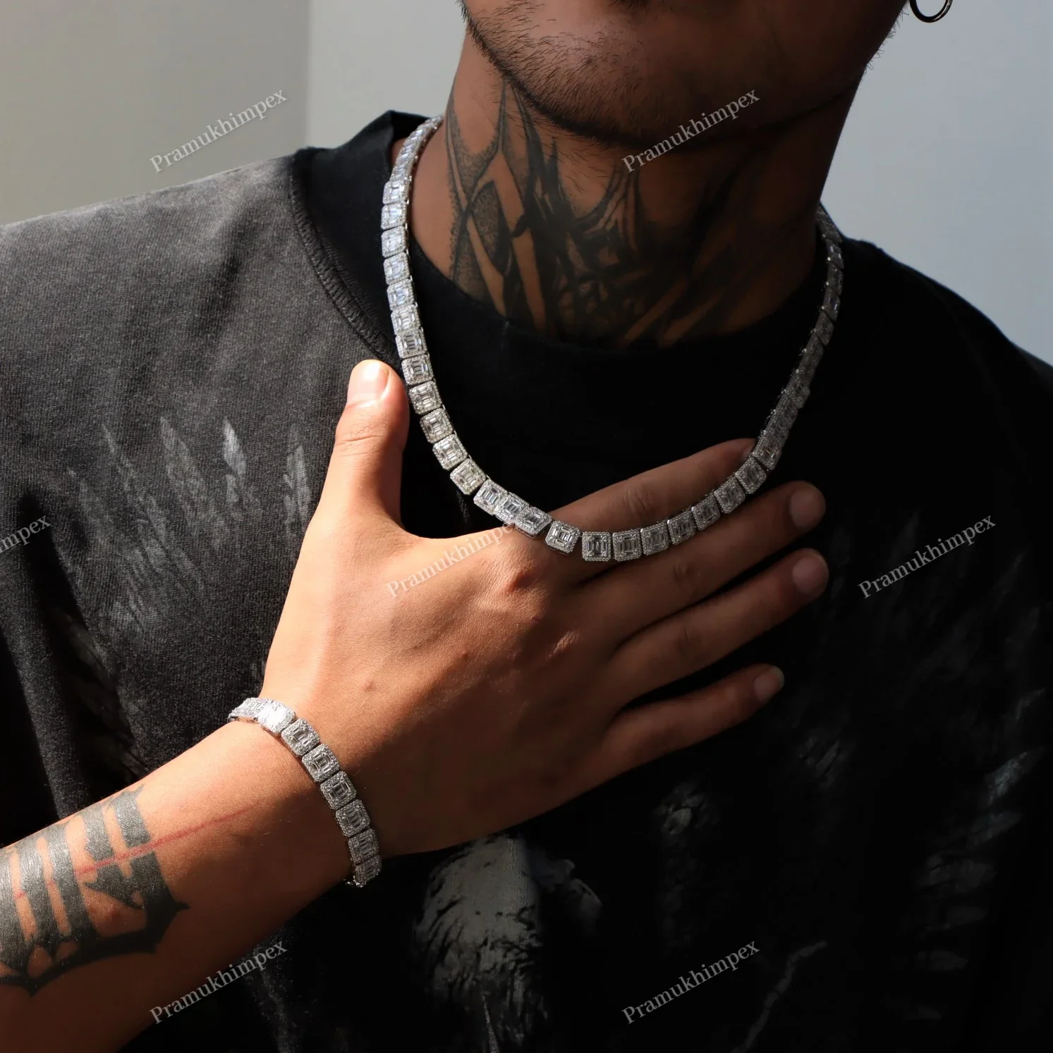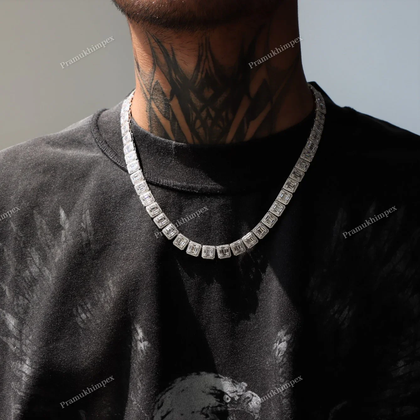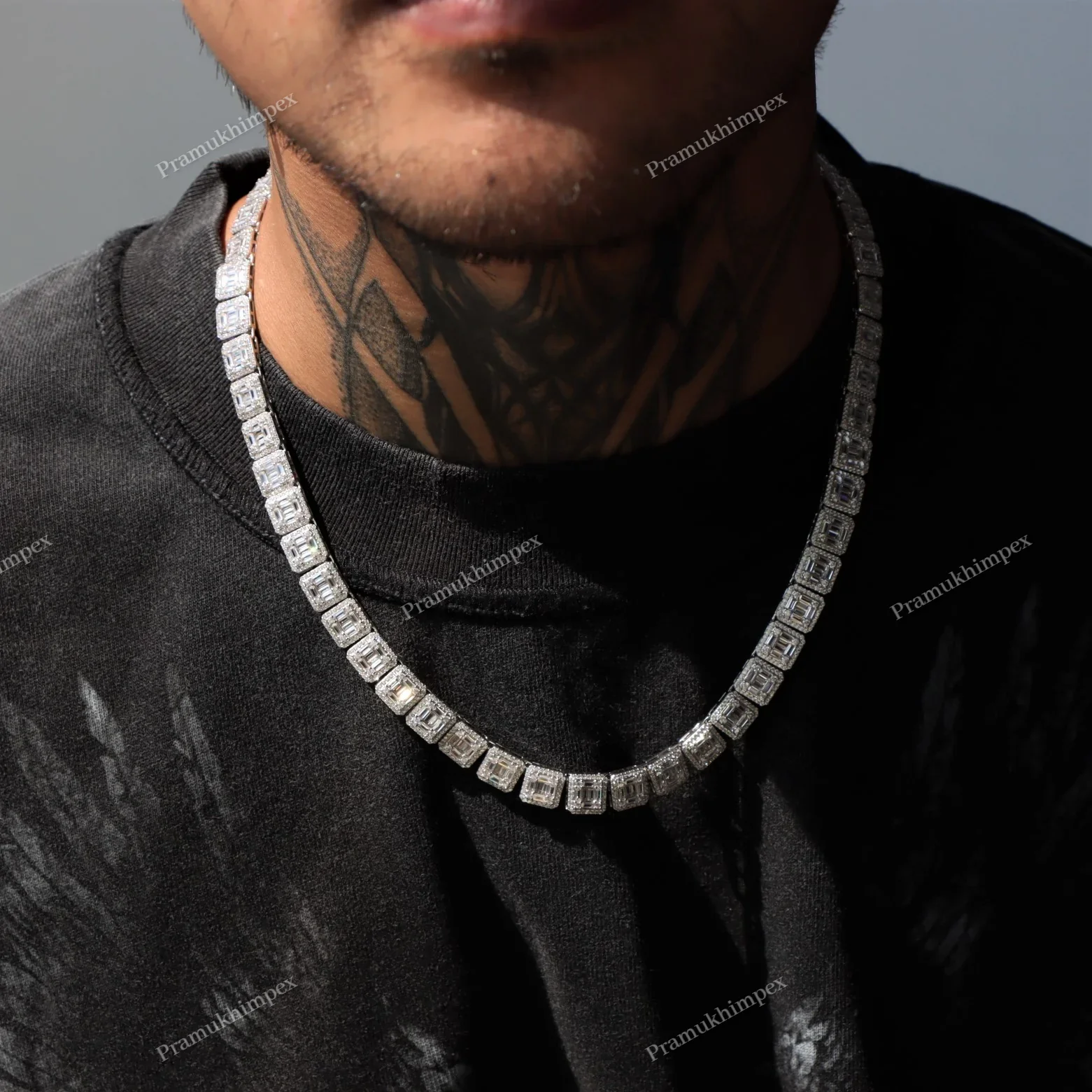 Authentic Moissanite 925 Sterling Silver Gold Plated Hip Hop Tennis Chain Baguette Cut Party Wedding Fashion Necklace