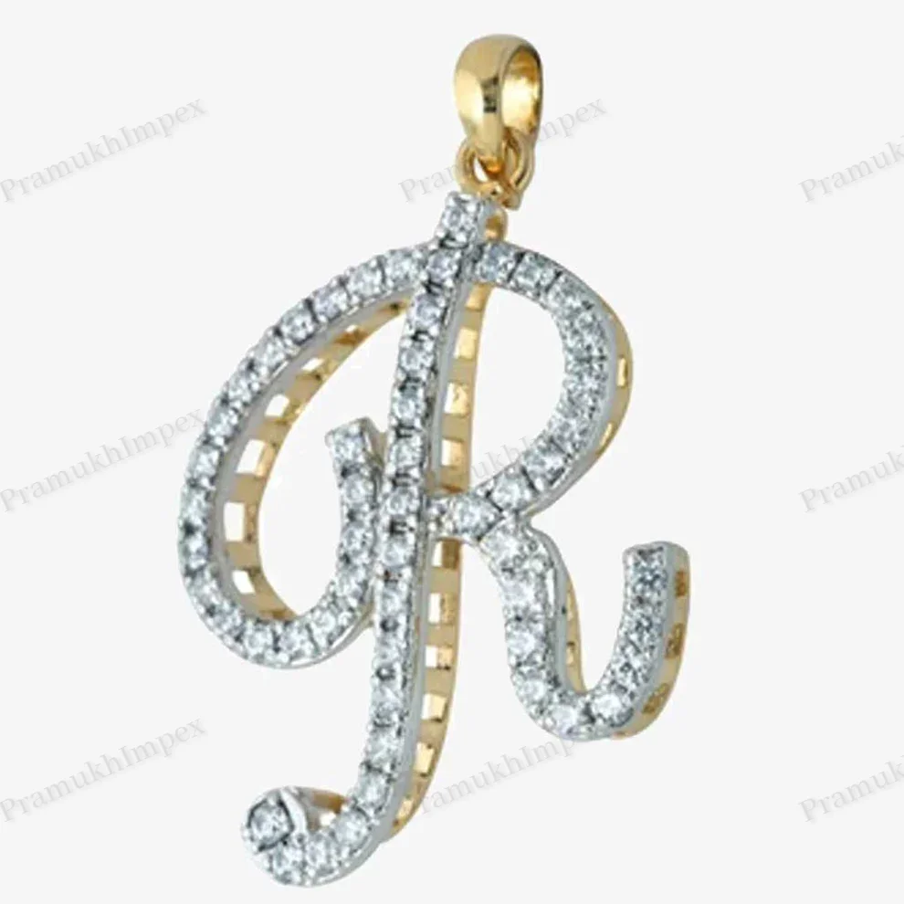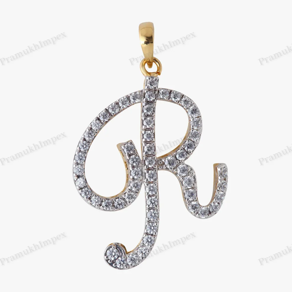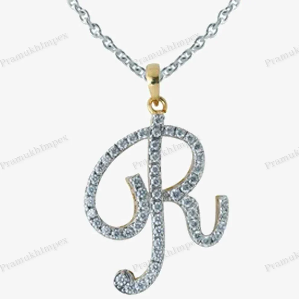 High Quality Trendy Party 925 Sterling Silver Gold Plated Moissanite Initial Pendant R Letter Customizable Alphabet Charm