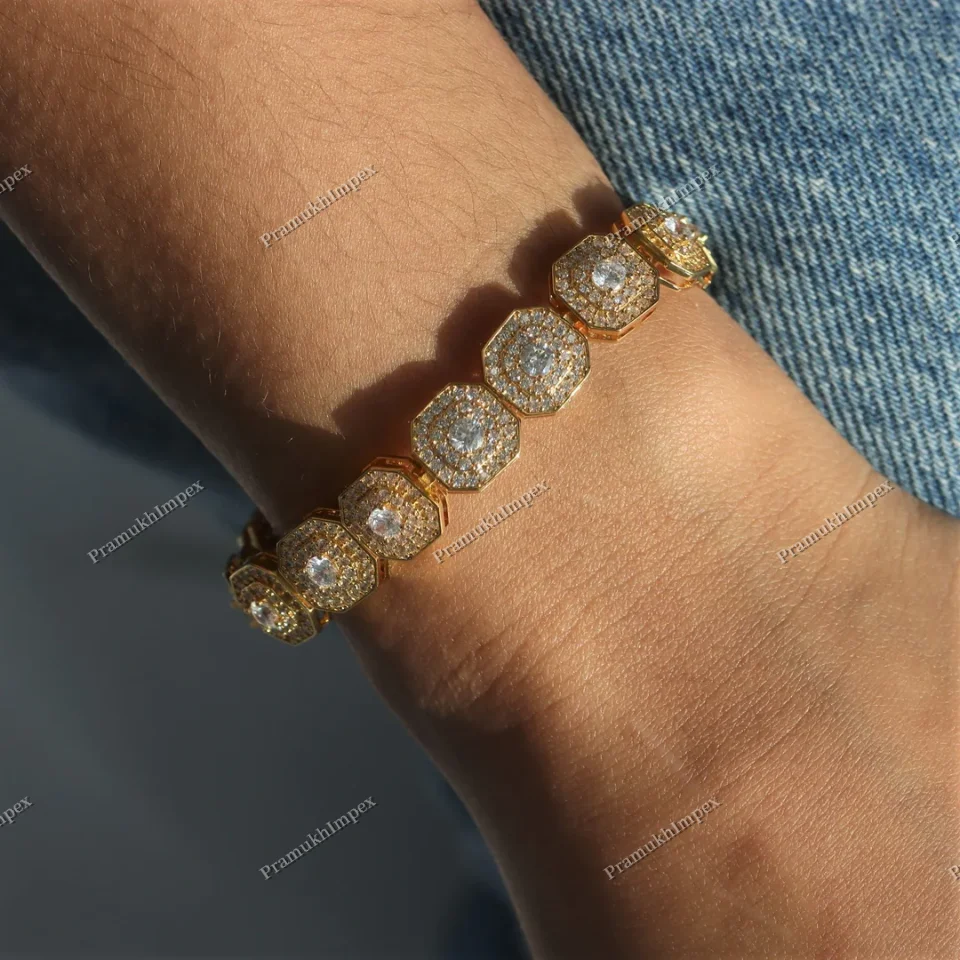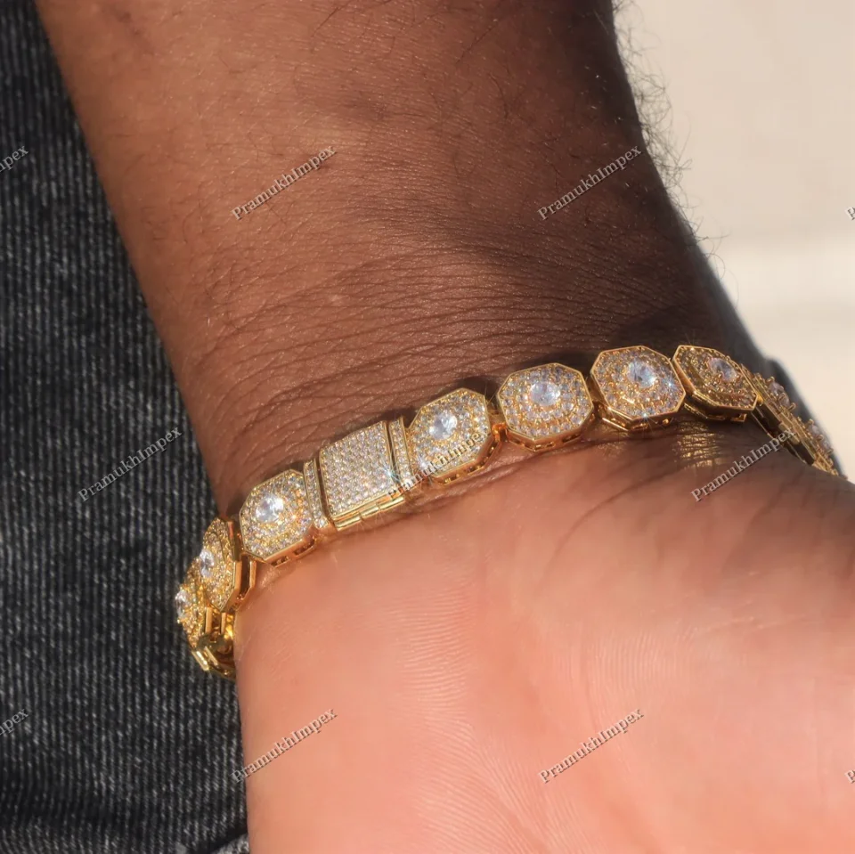 Customized 10mm Clustered Tennis Bracelet VVS Moissanite Yellow Gold Plating Sterling Silver 7.25CTW Anniversary Occasions