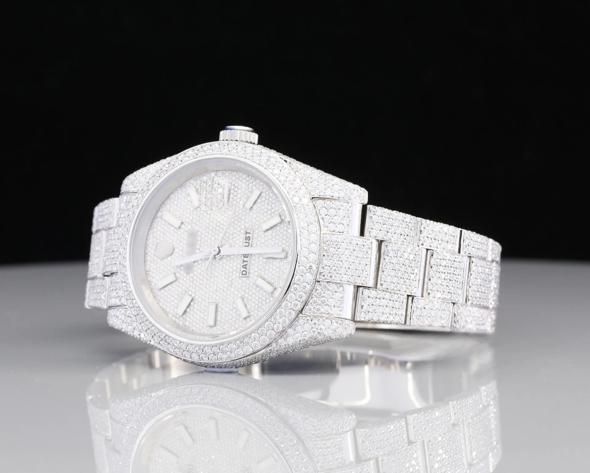 Custom High Iced GRA Certified Moissanite Full White Diamond Automatic Fashion Business Bust Hip Hop Belt Luxury Unisex Watch