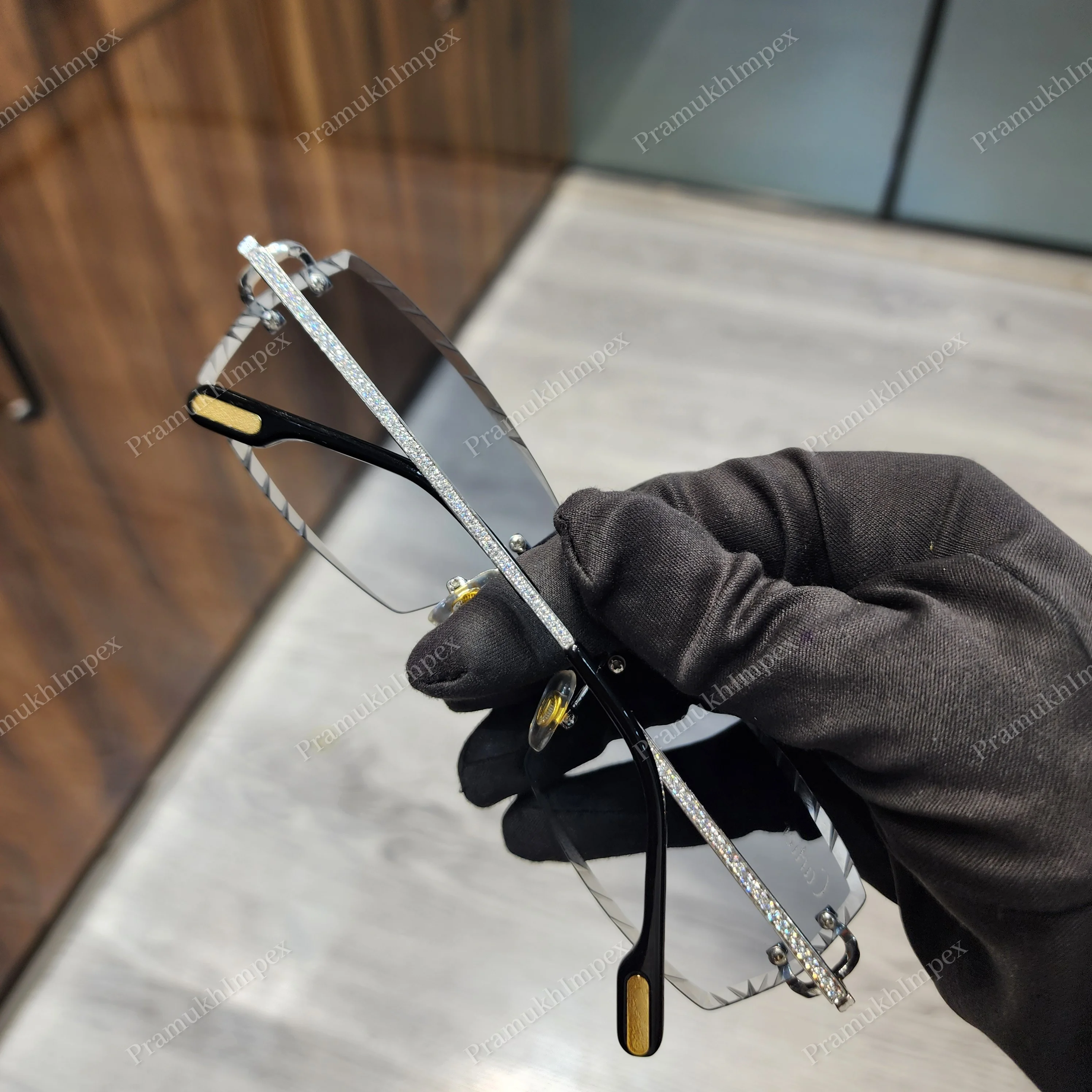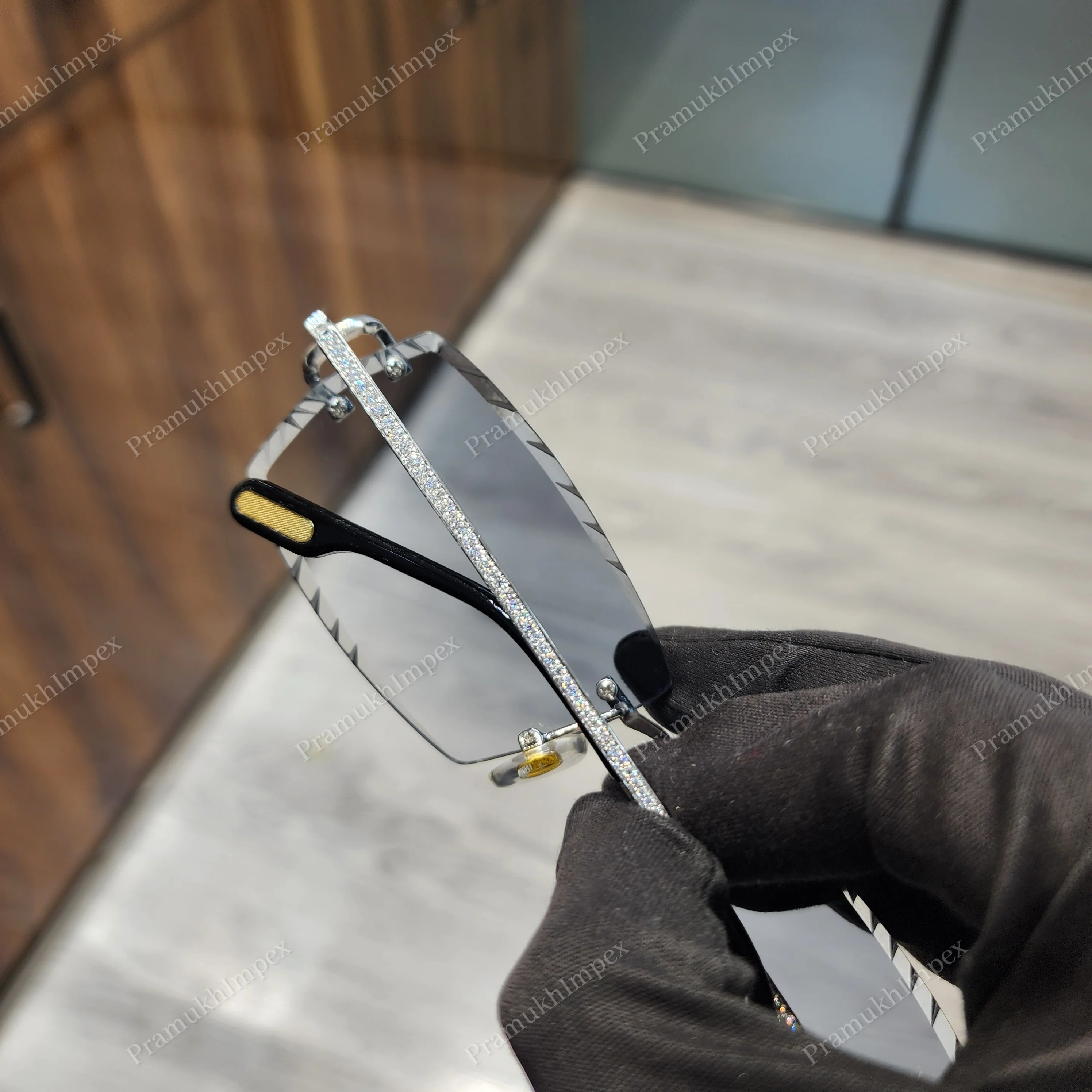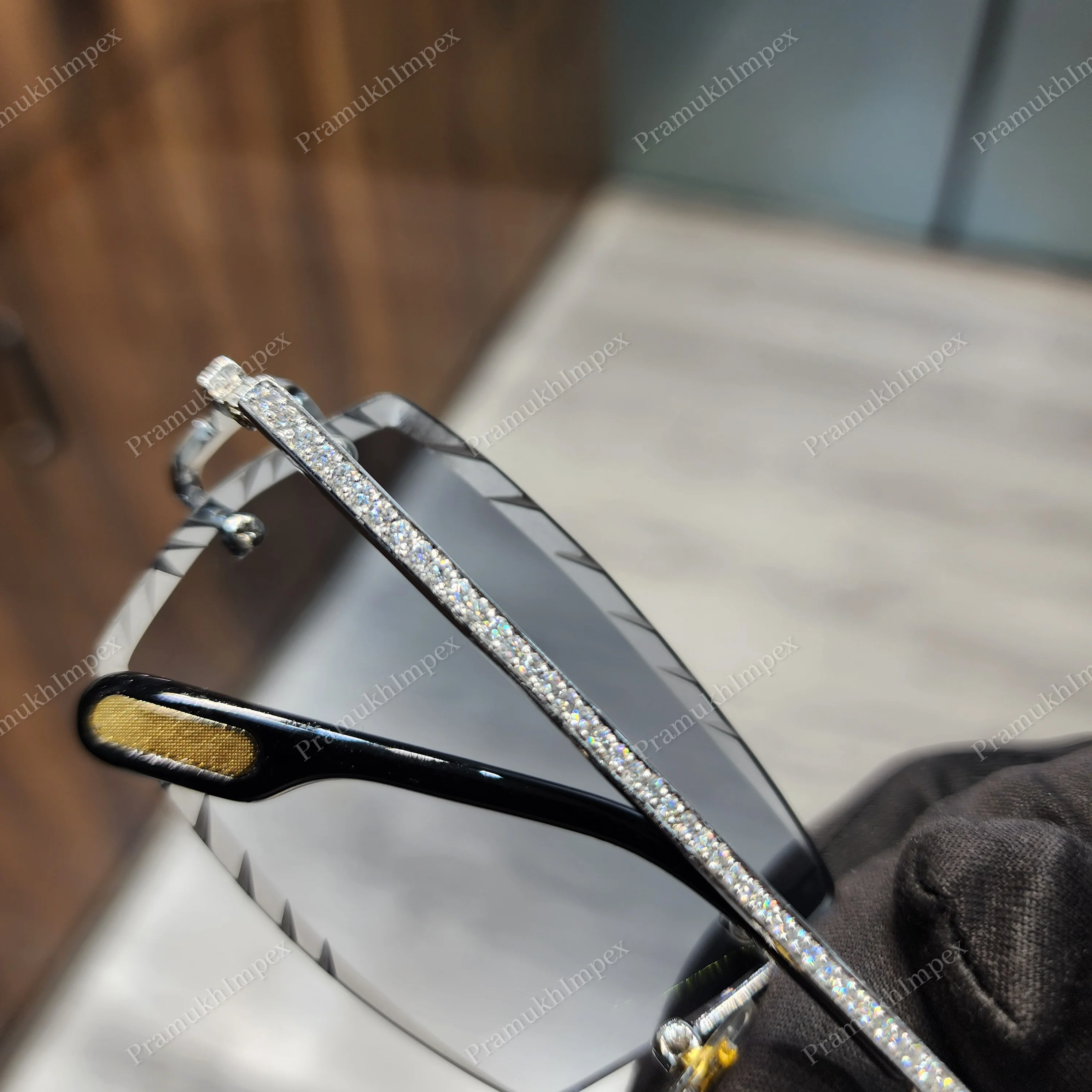 Dark Blue Anti-Reflective Moissanite Diamonds Stainless Frame Sunglasses Hot Selling Personal Custom Handmade Men Hiphop Jewelry