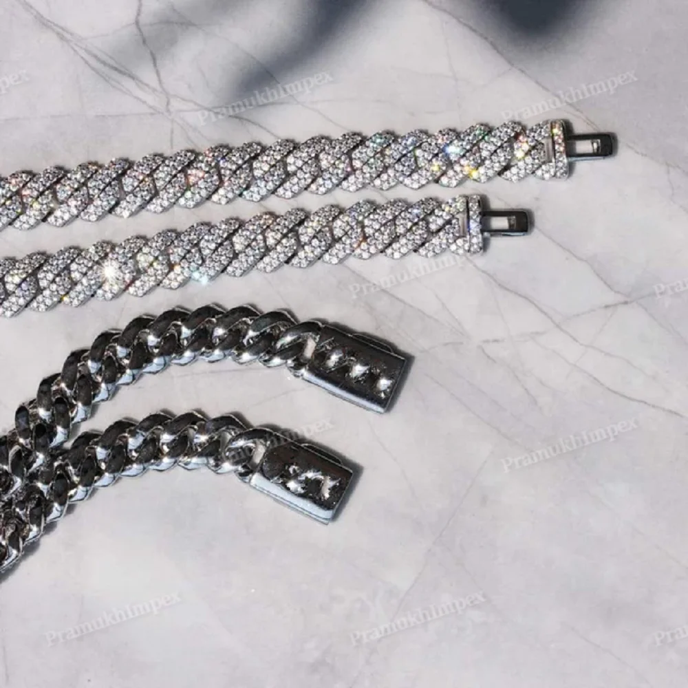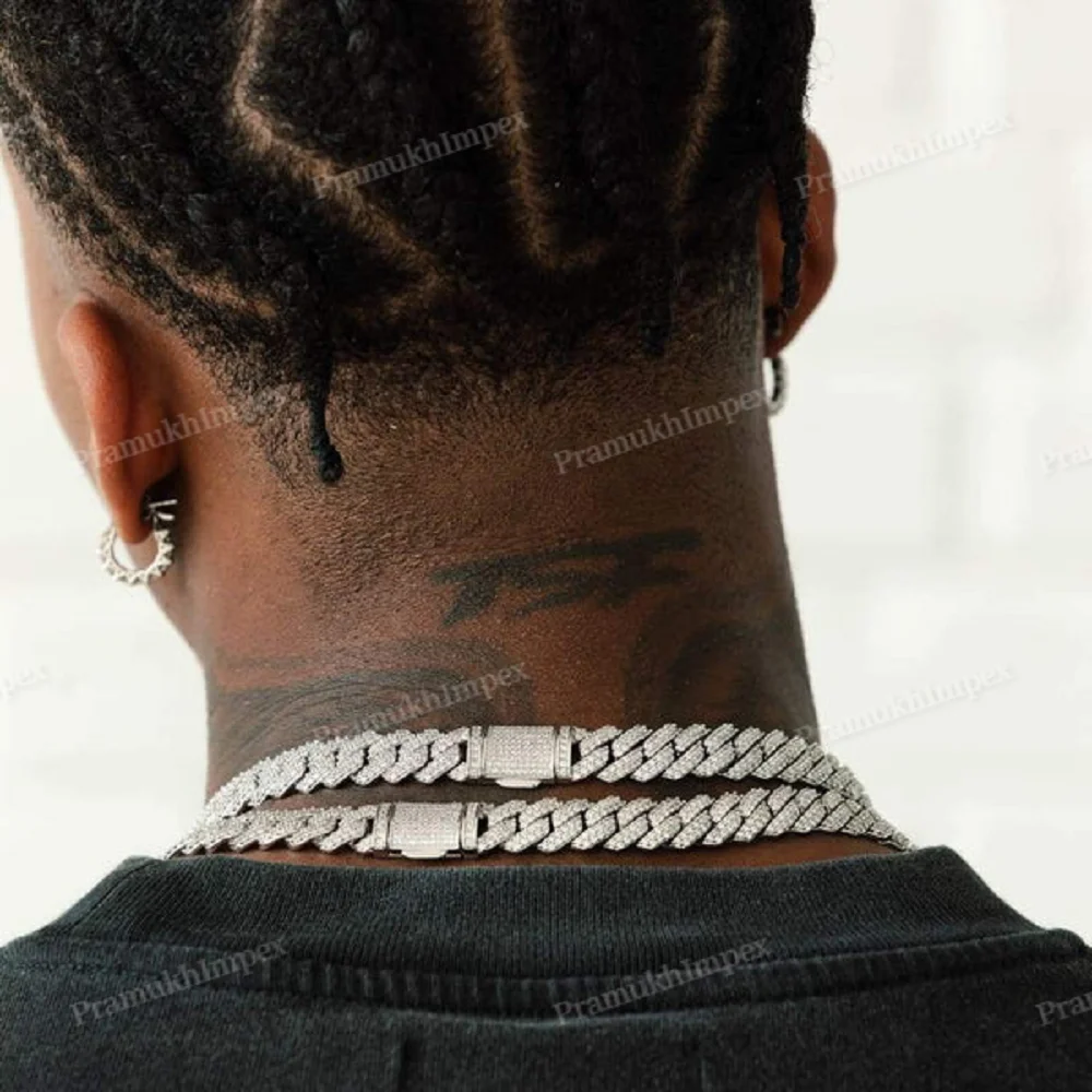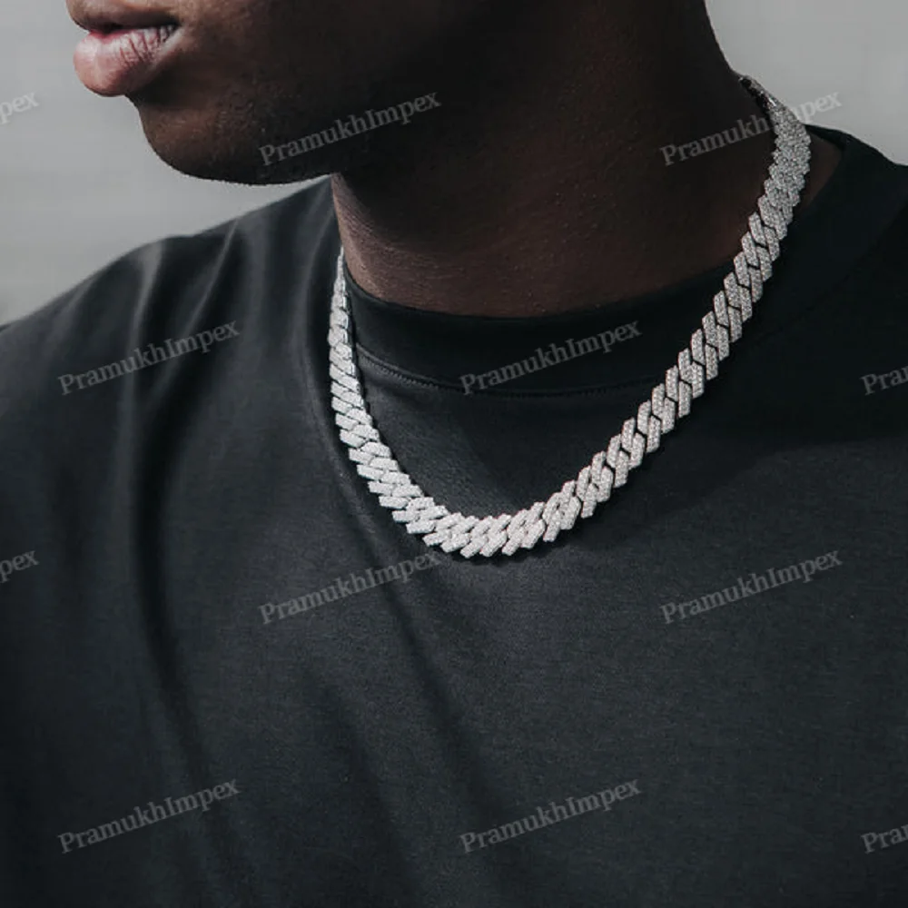 Moissanite Miami Cuban Link Chain Necklace White Gold 16-24 Inch Round Cut Wholesale Low Price Him