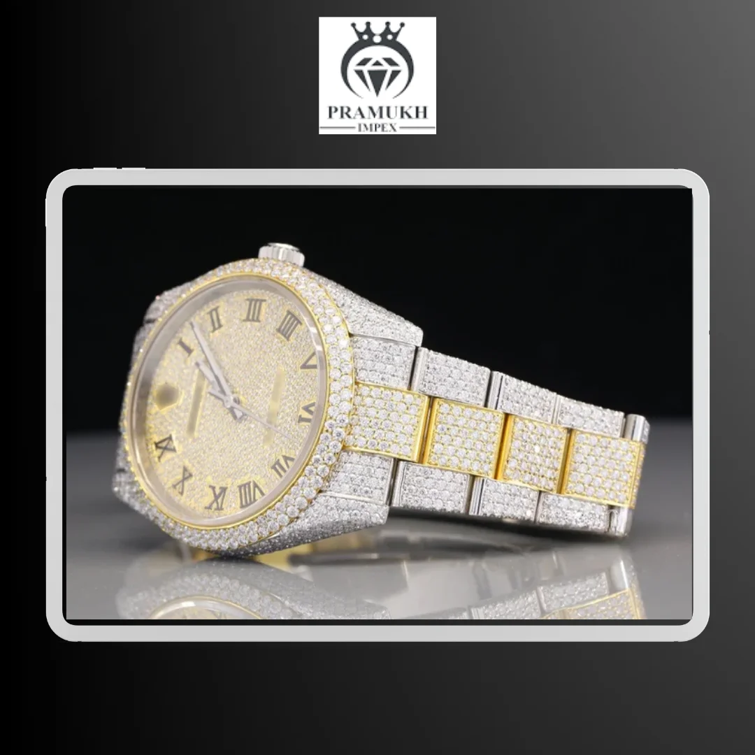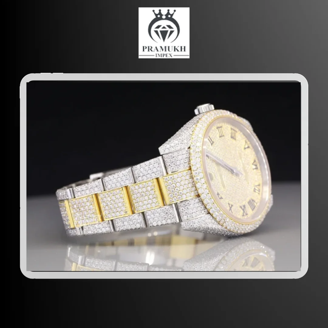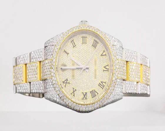 Custom Design Logo High Luxurious ETA Movement Stainless Steel IcedOut VVS Clarity Full Moissanite Diamond Hip Hop Wrist Watch