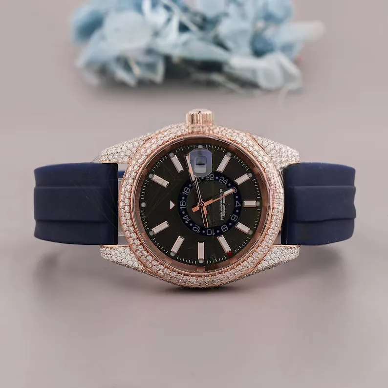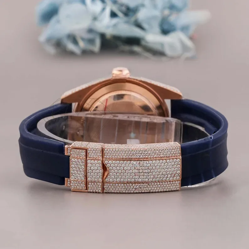 Best Selling High Fashion Business Hip Hop VVS Moissanite Iced Custom White Diamond Bezel Luxury Unisex Watch Gift Him