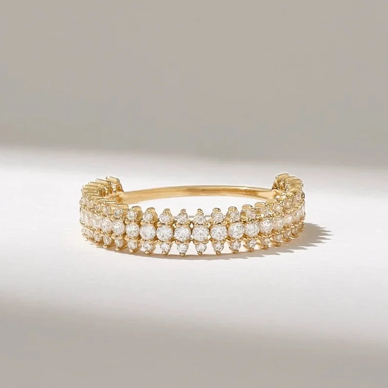 High Grade Round Cut Lab Grown Diamond Half Eternity Ring Band Vintage Style for Unisex Wedding & Party Jewelry Low Prices