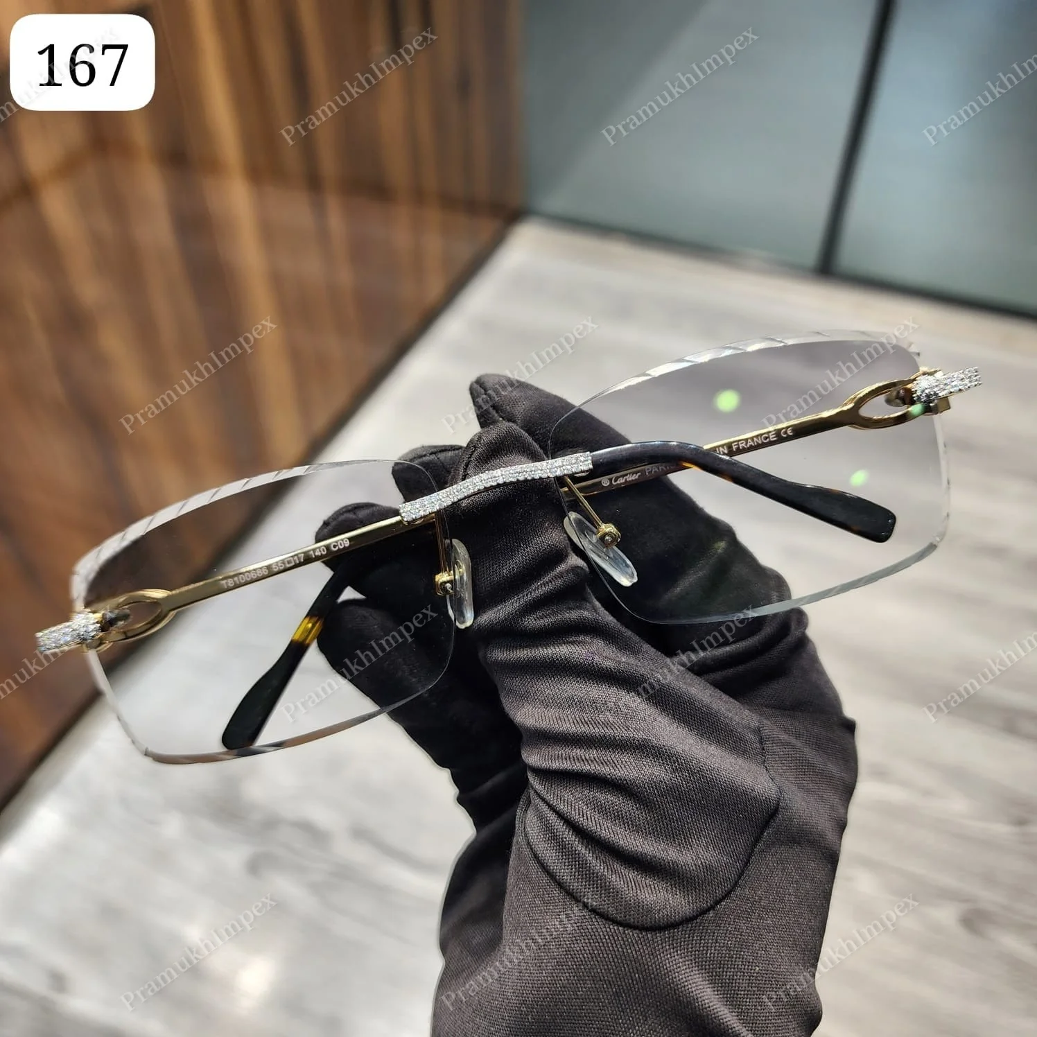 Luxurious Transparent Gray Anti-Reflective Len Moissanite Studded Stainless Frame Fashion Sunglasses Classic Design GRA