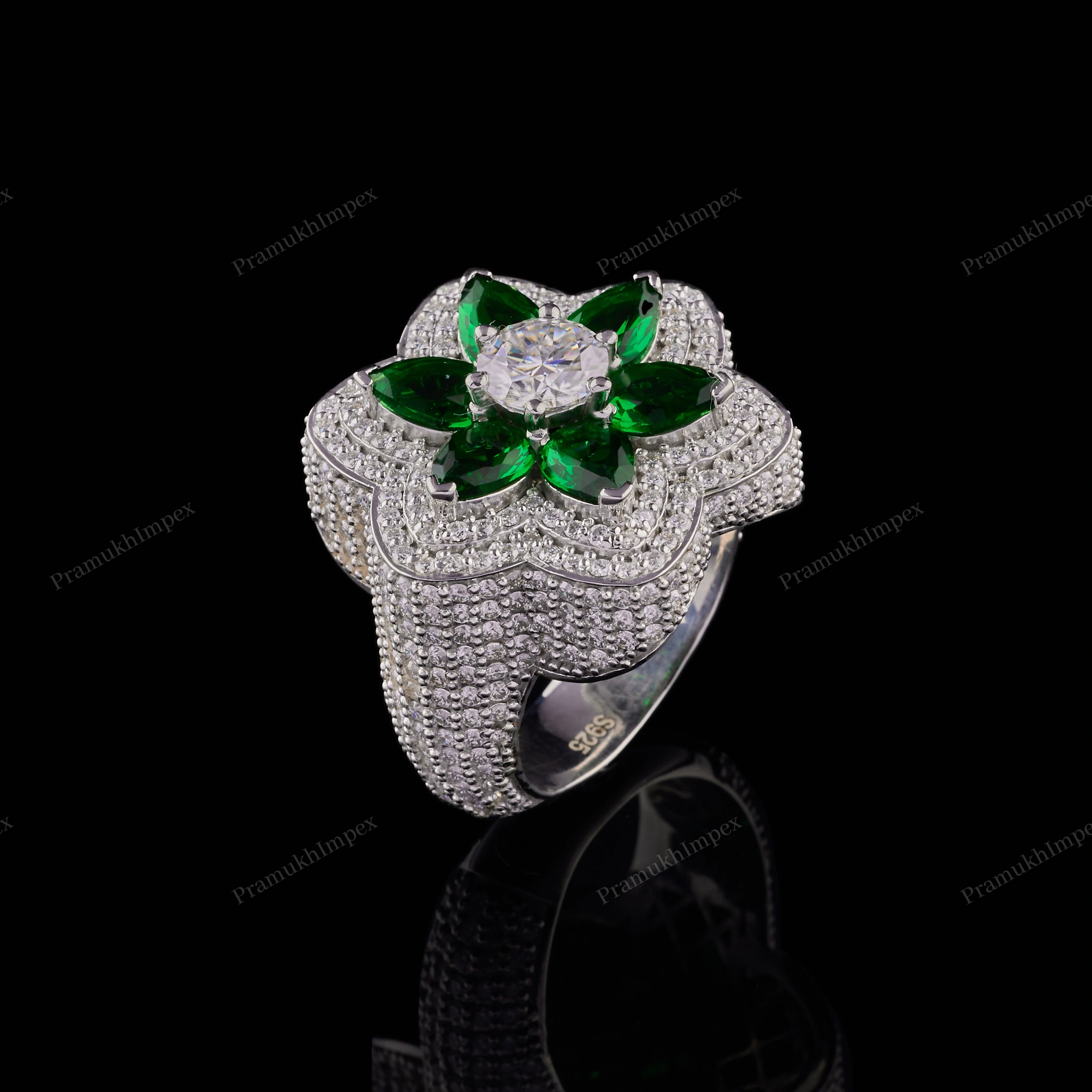 Men's Women's Full Iced Flower Shape Moissanite Ring 925 Sterling Silver Rose/Yellow/White Gold Plated Prong Set Hiphop