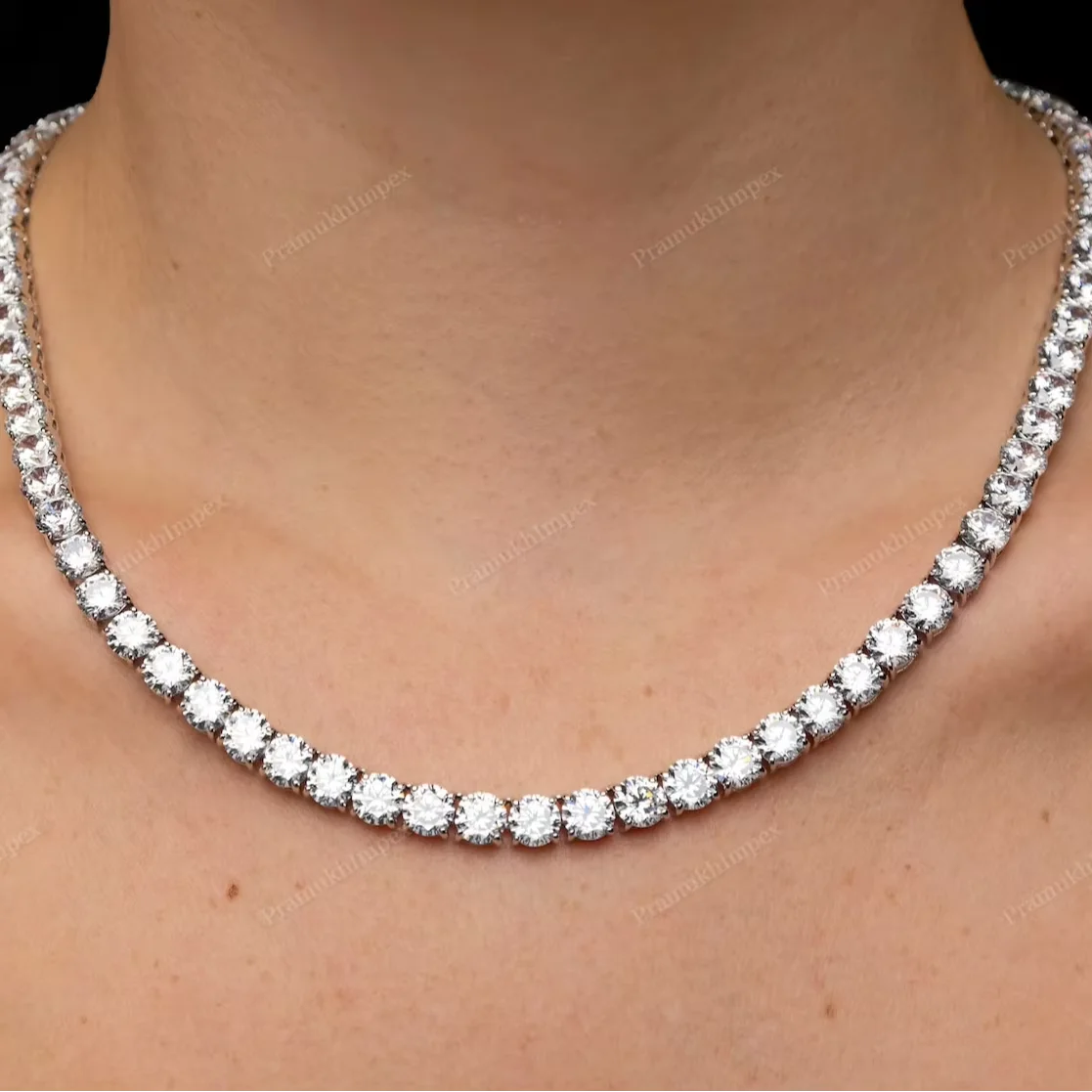6mm Moissanite Diamond 16-inch Tennis Chain Necklace Luxury Real Sterling Silver Gold Plated VVS Hip Hop Jewelry Party Wear