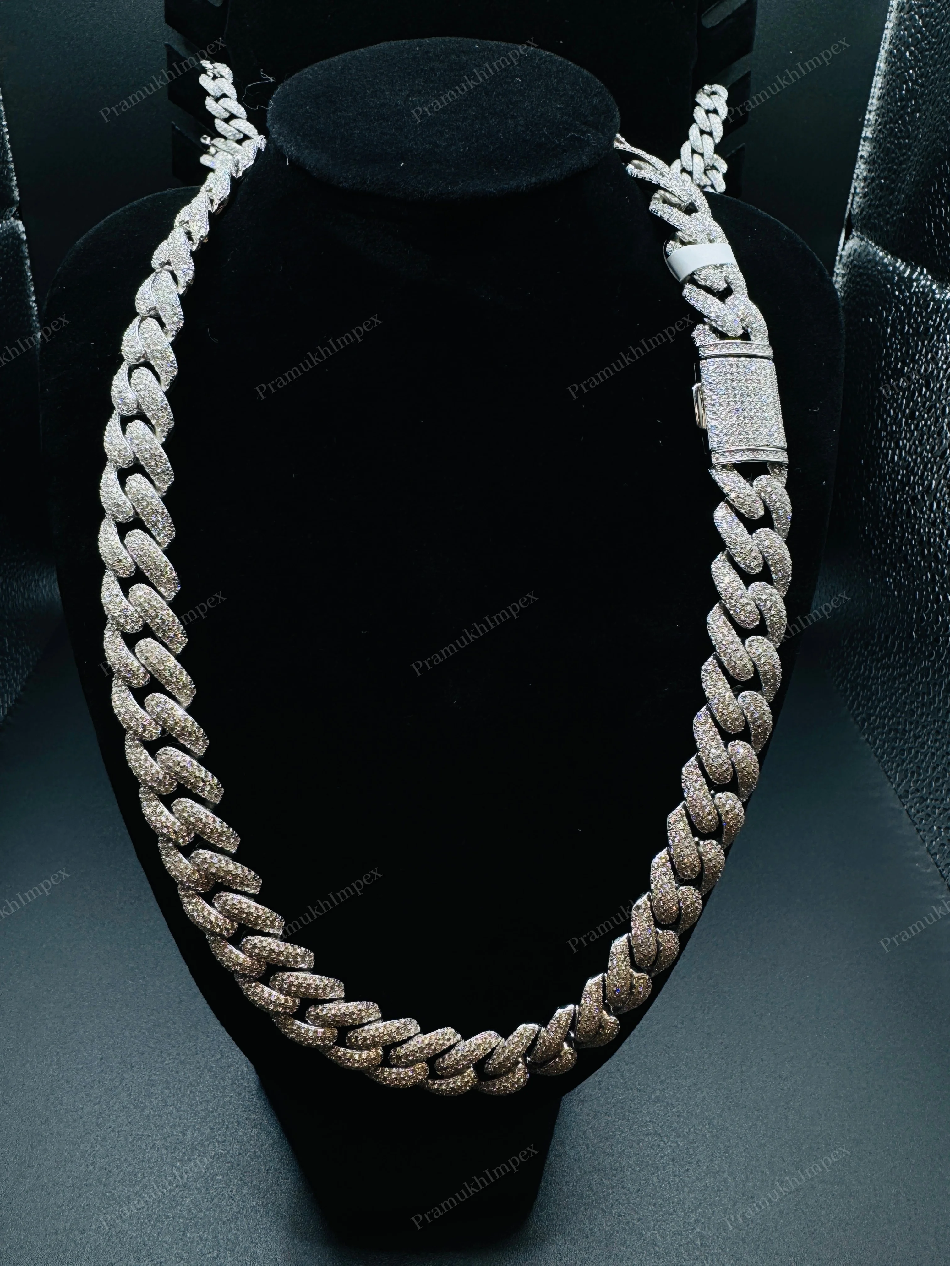 14mm 18inch 925 Sterling Silver Cuban Chain Gold Plated Hip Hop Style VVS Lab Created Moissanite GRA Certificate Link Party