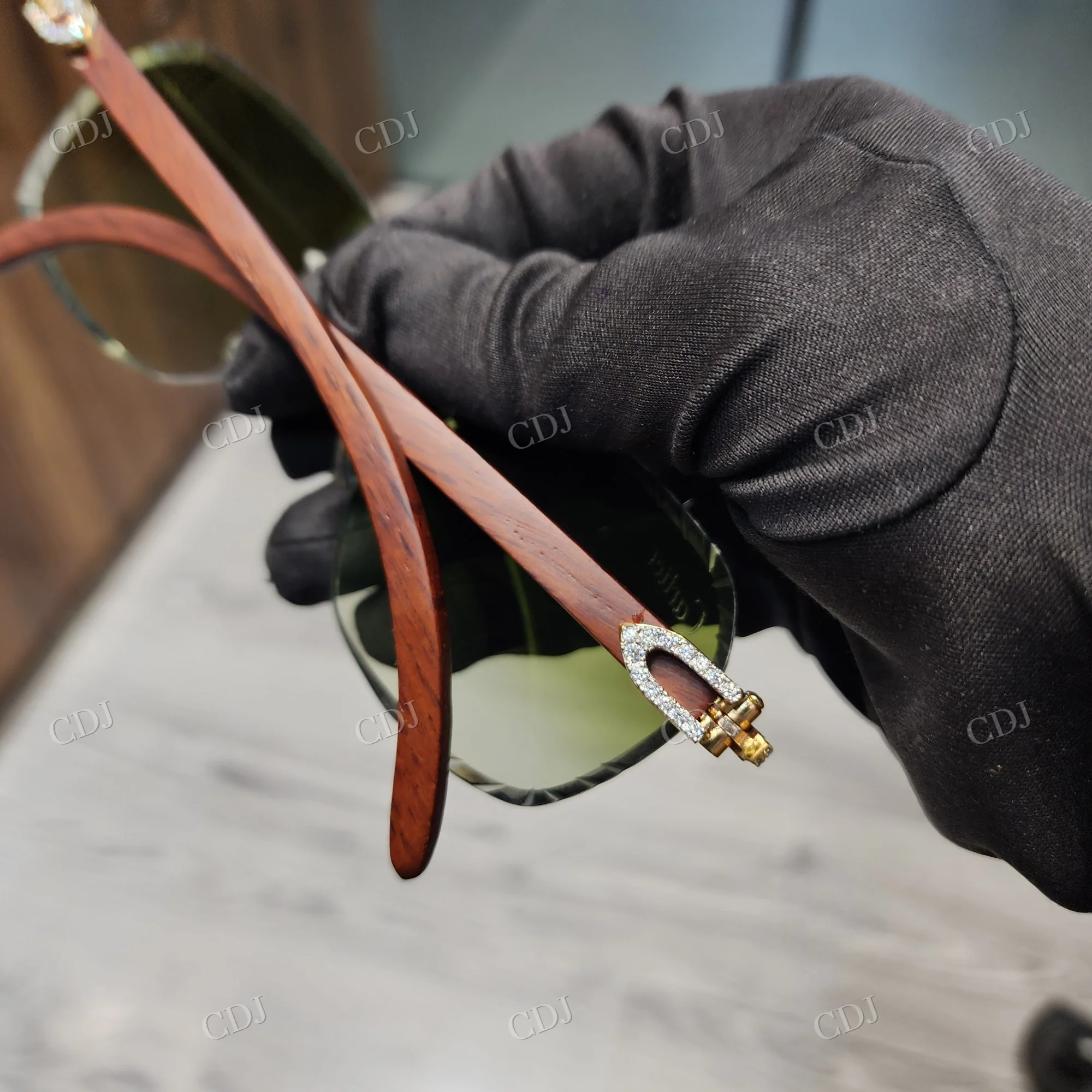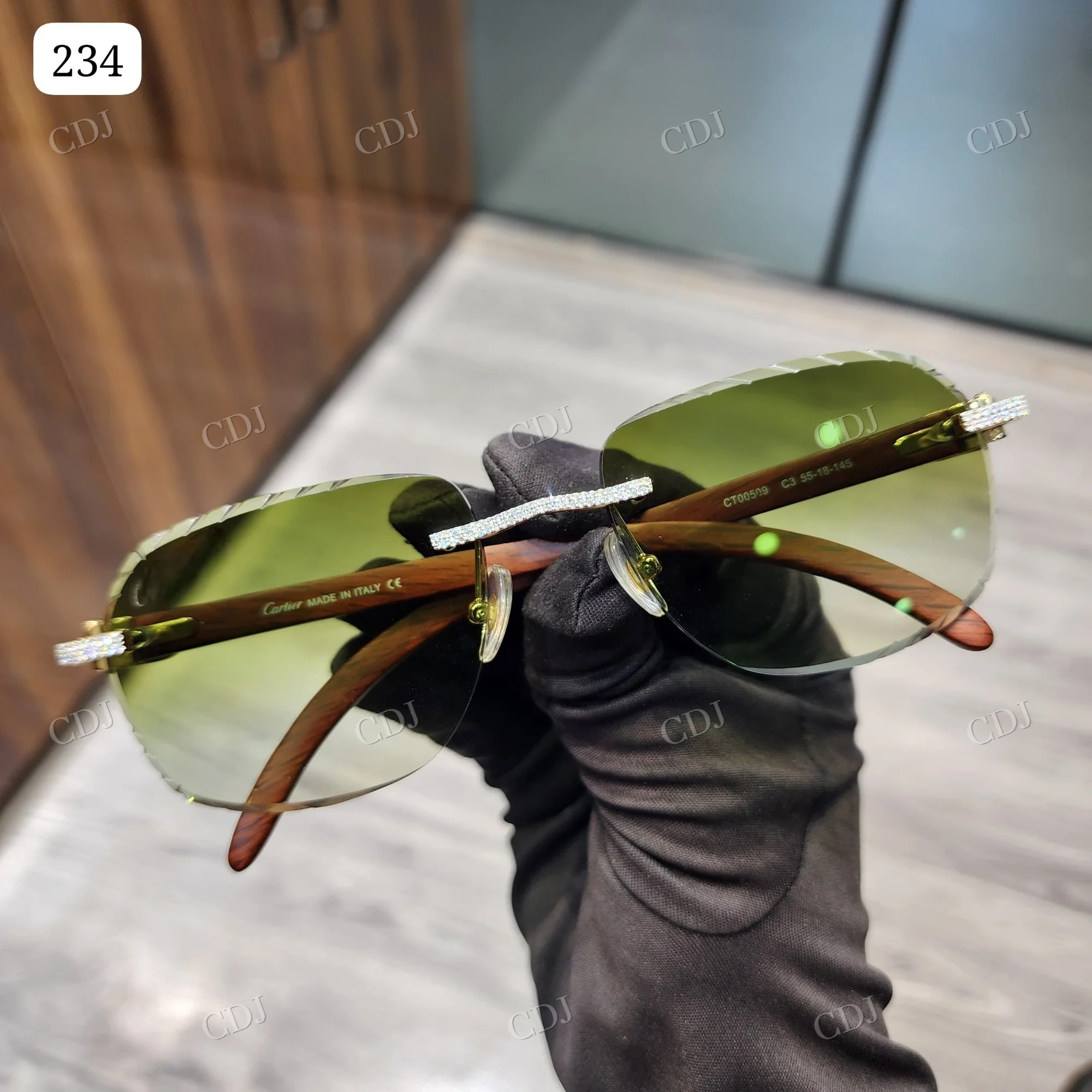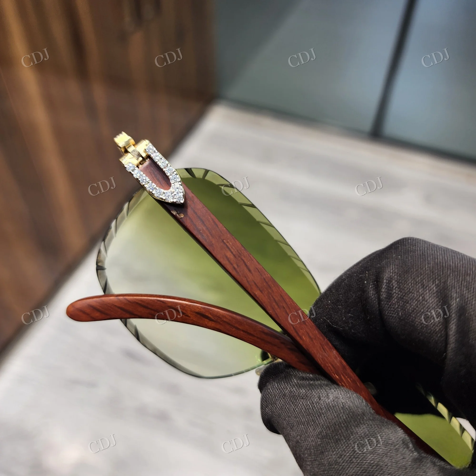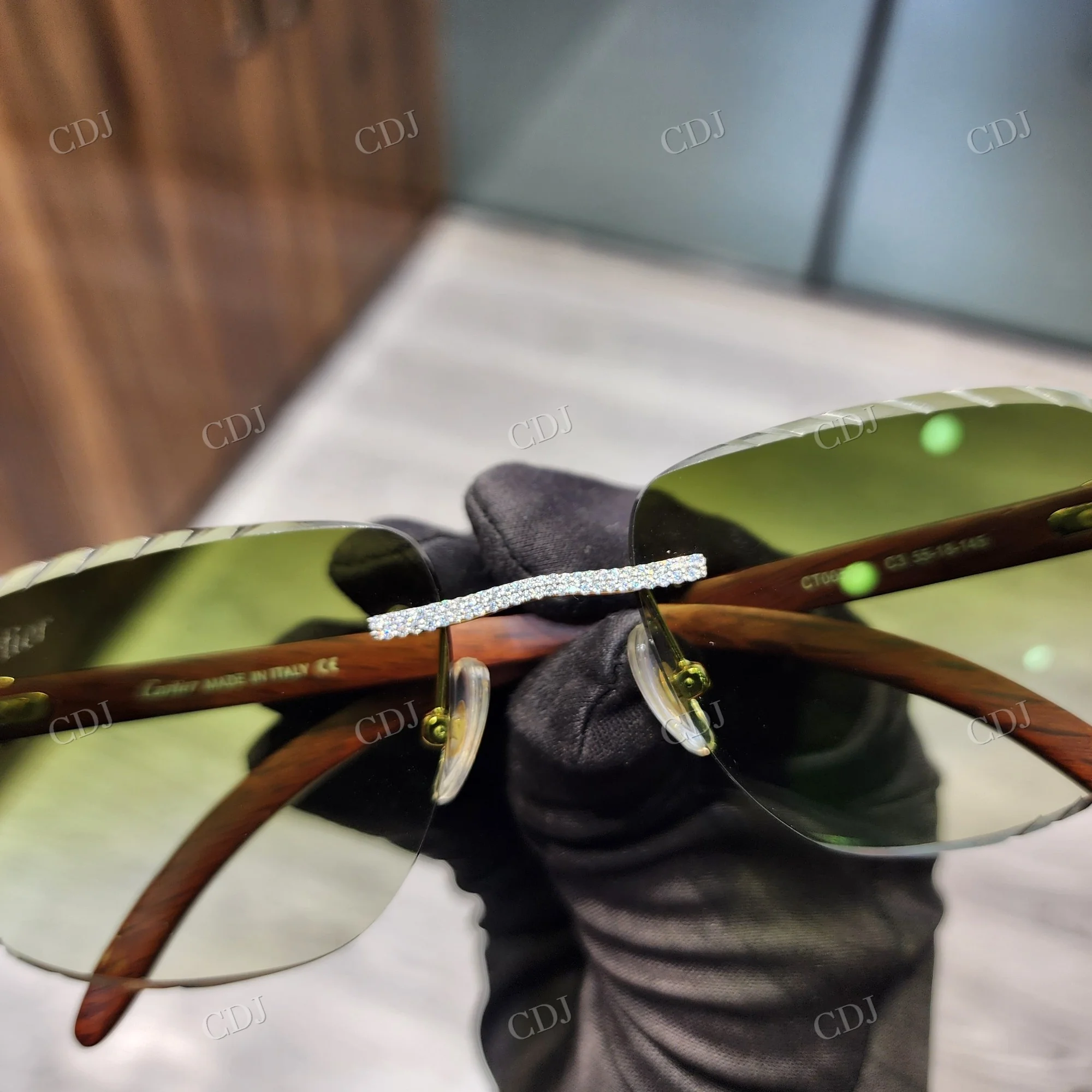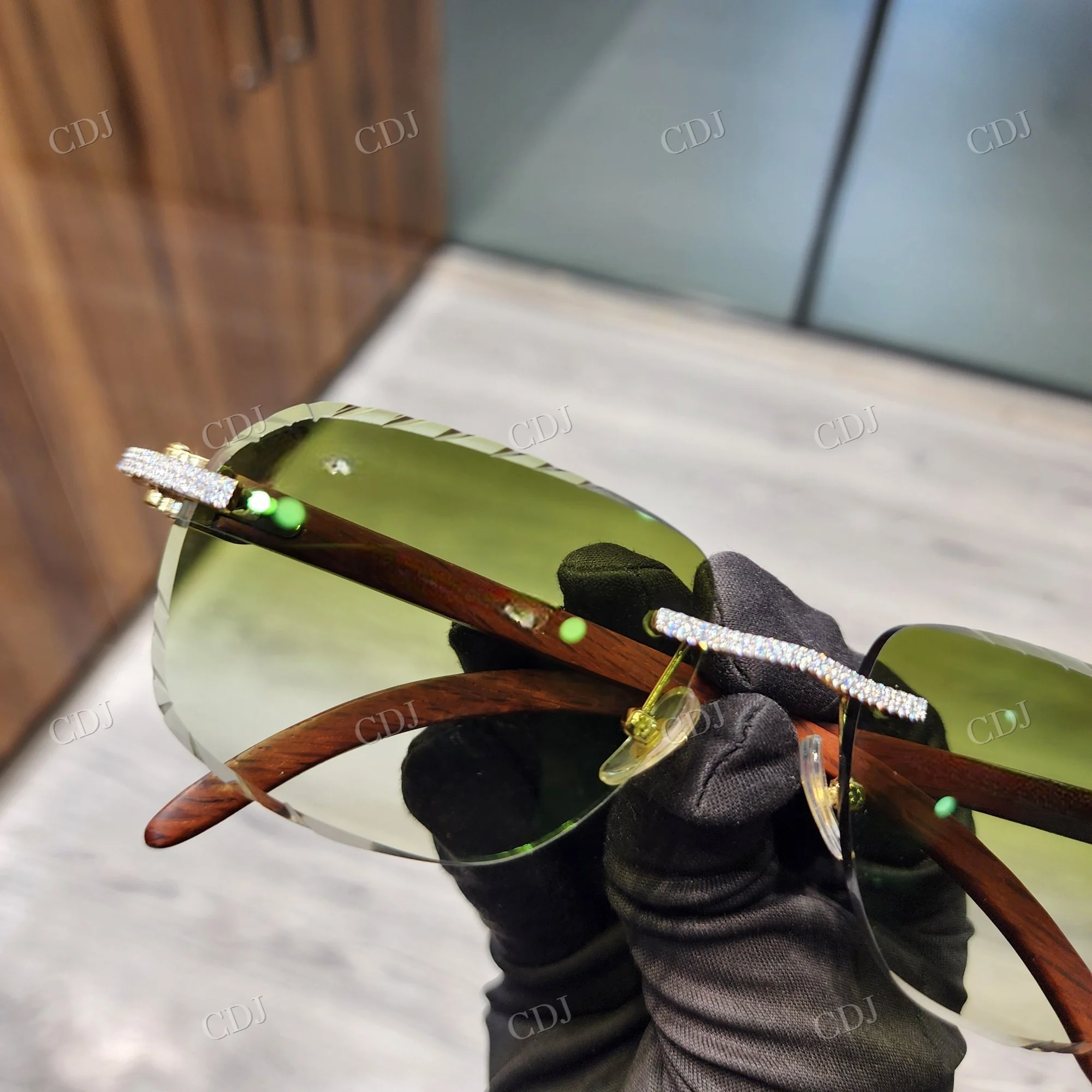 Luxurious Olive Green Anti-Reflective Lenses Custom HipHop Rapper Jewelry VVS Moissanite Rimless Sunglasses Men