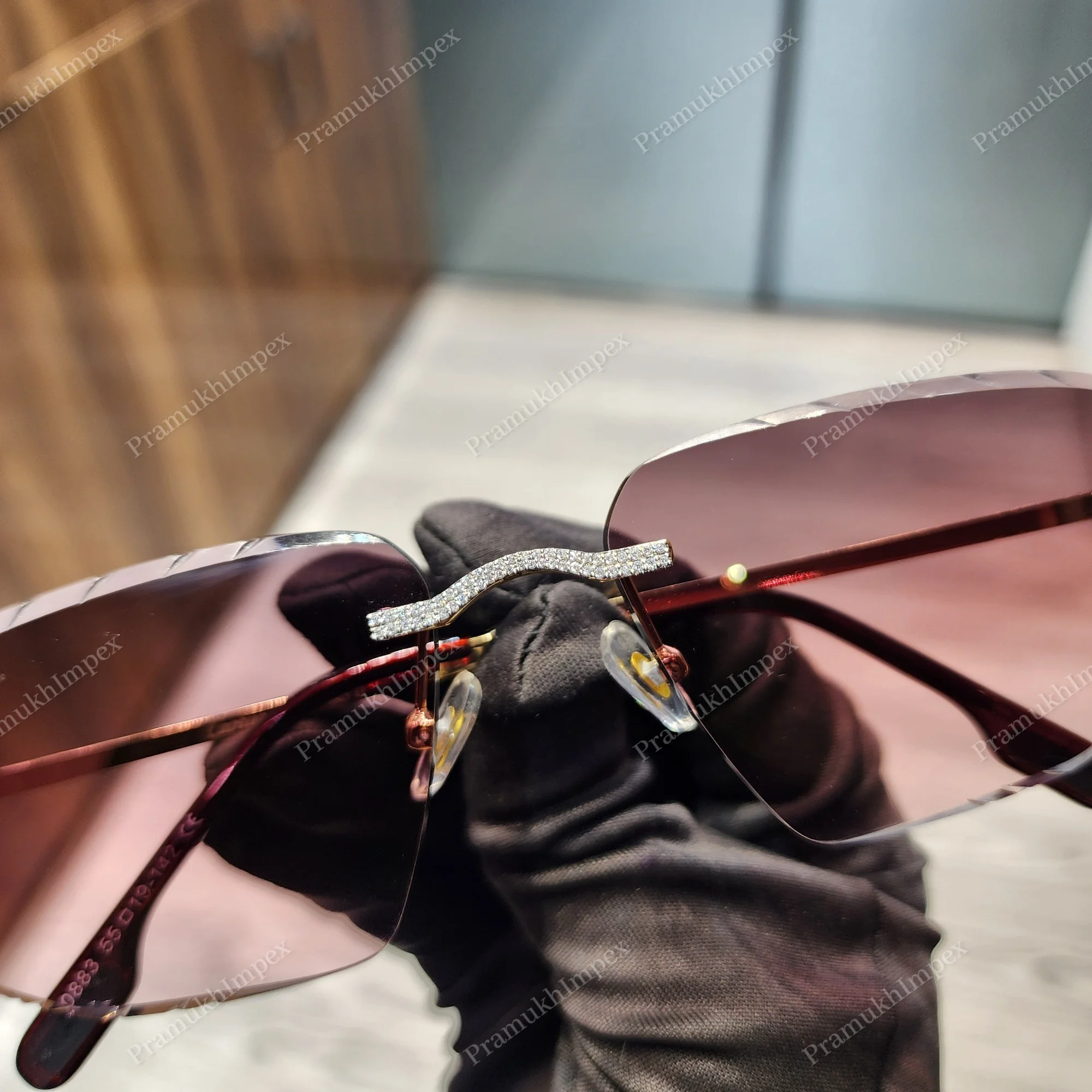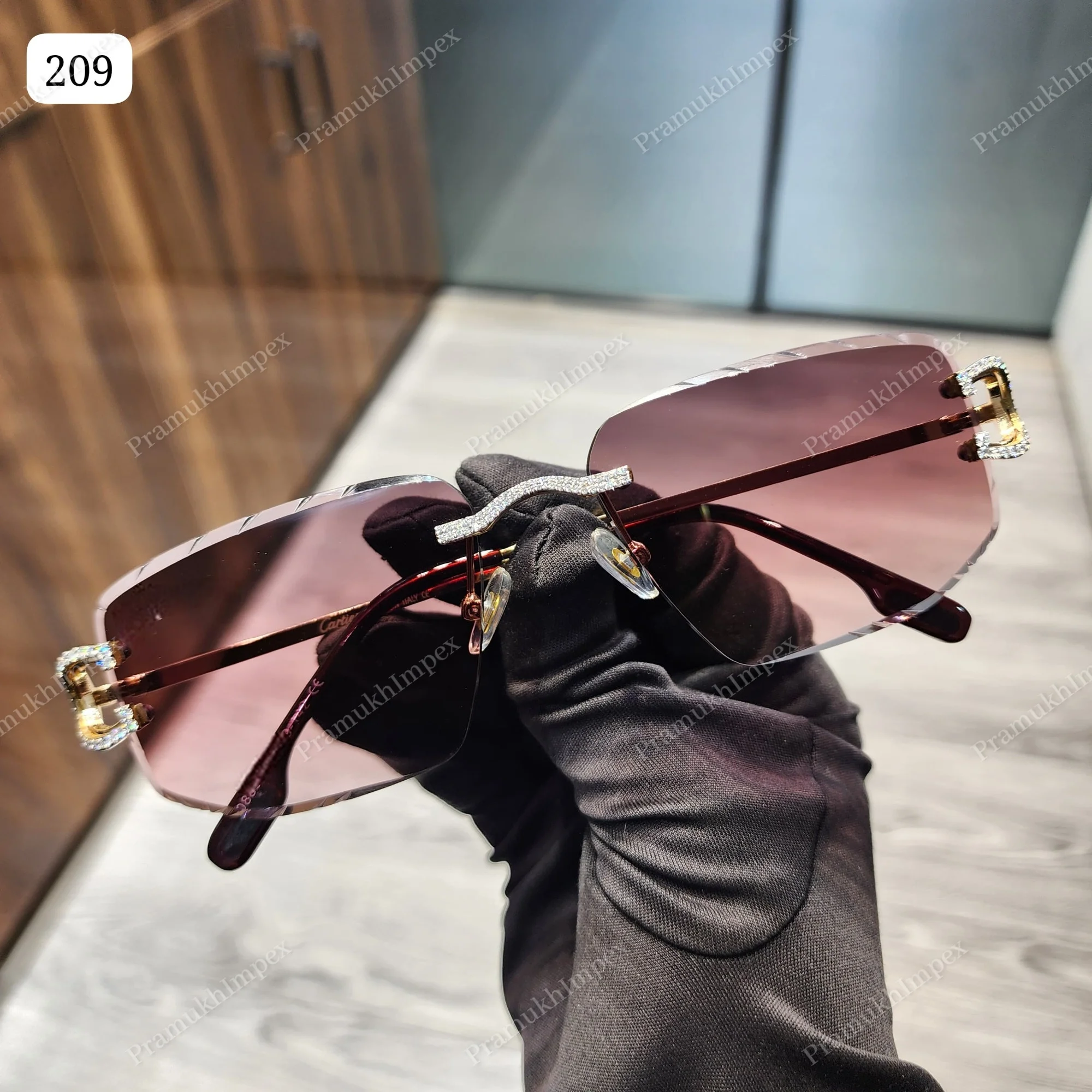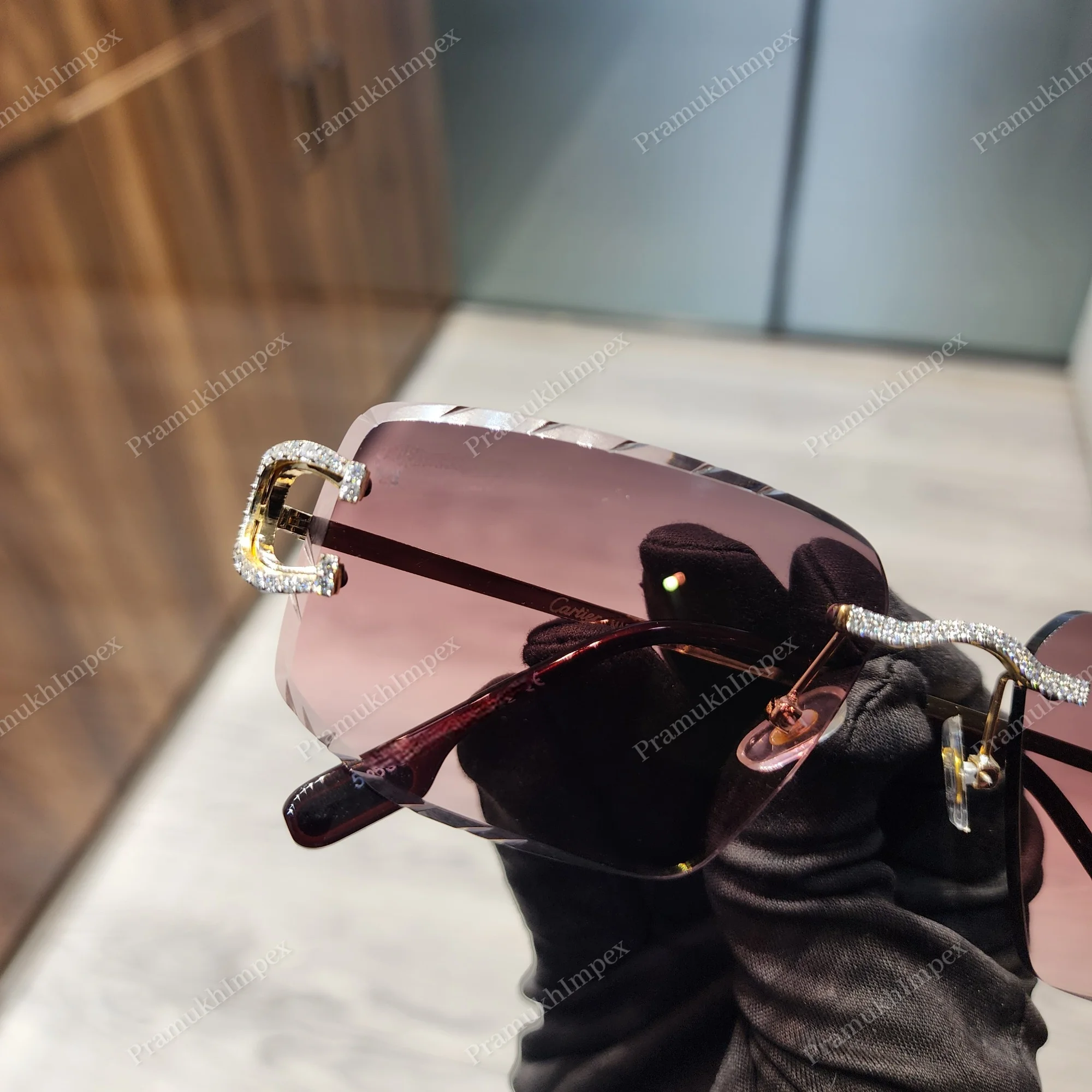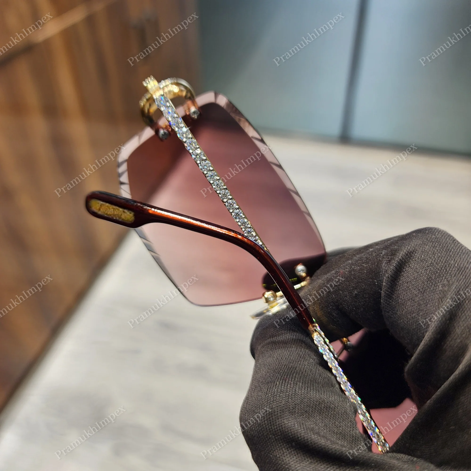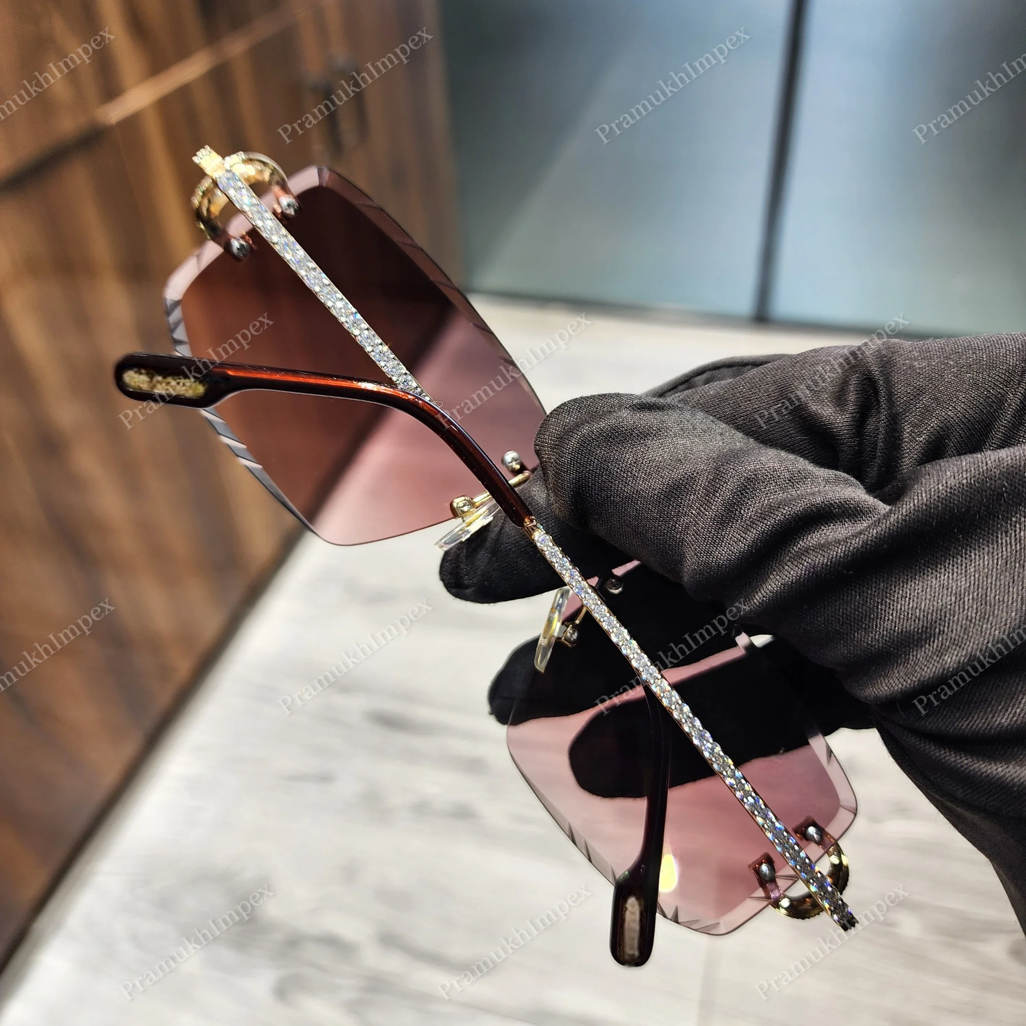 Customized Rectangle Shapes Brown Shade Glass Anti-Reflective Stainless Frame 1 Row Bridge VVS D Moissanite Studded Luxury Mens