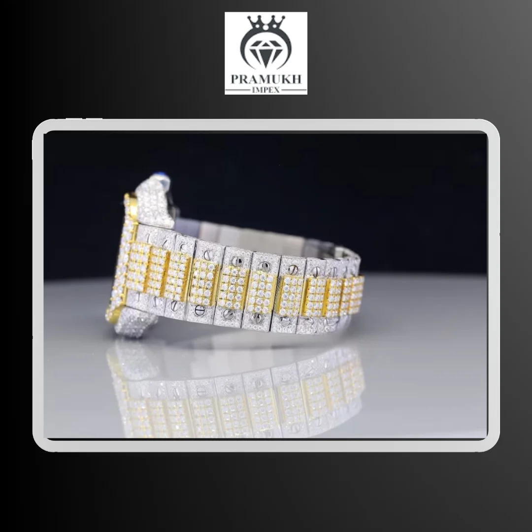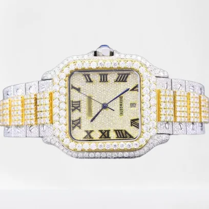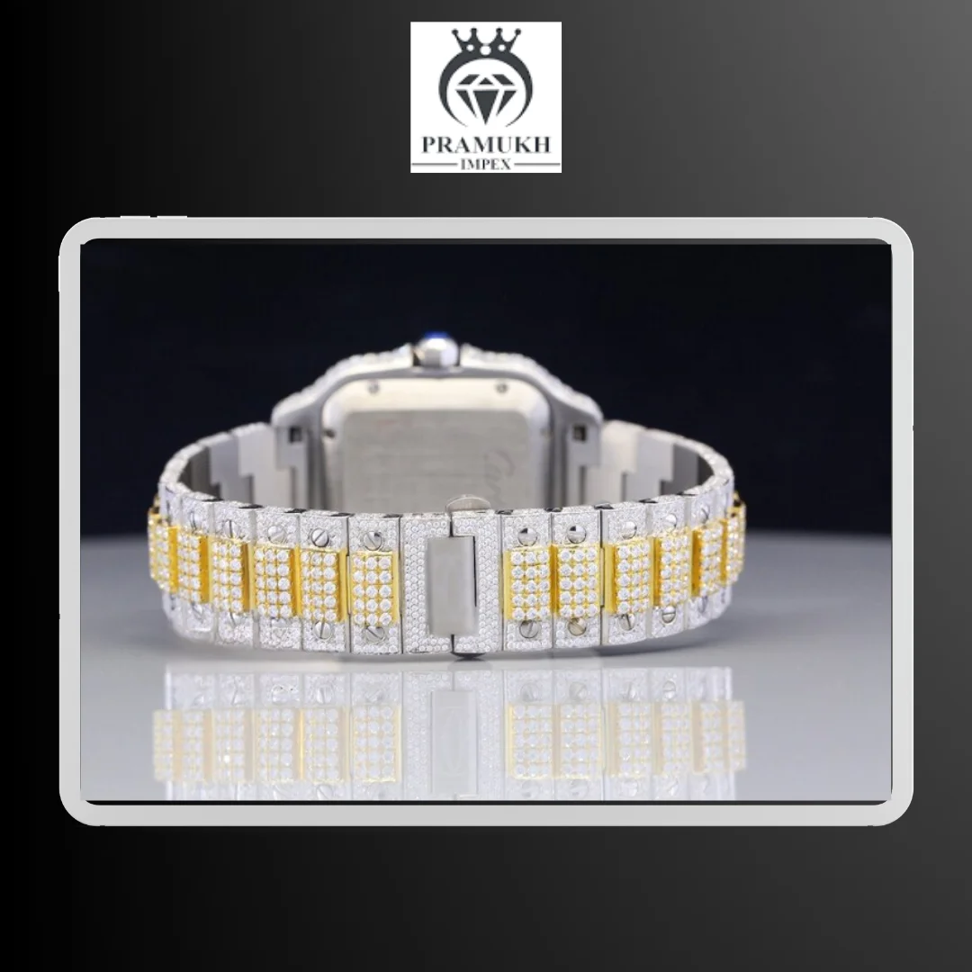 Factory Direct Supply VVS Moissanite Diamond Studded Fully Iced Square Antique Stainless Steel Automatic Men Wrist Watch