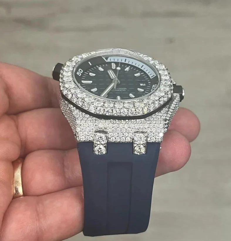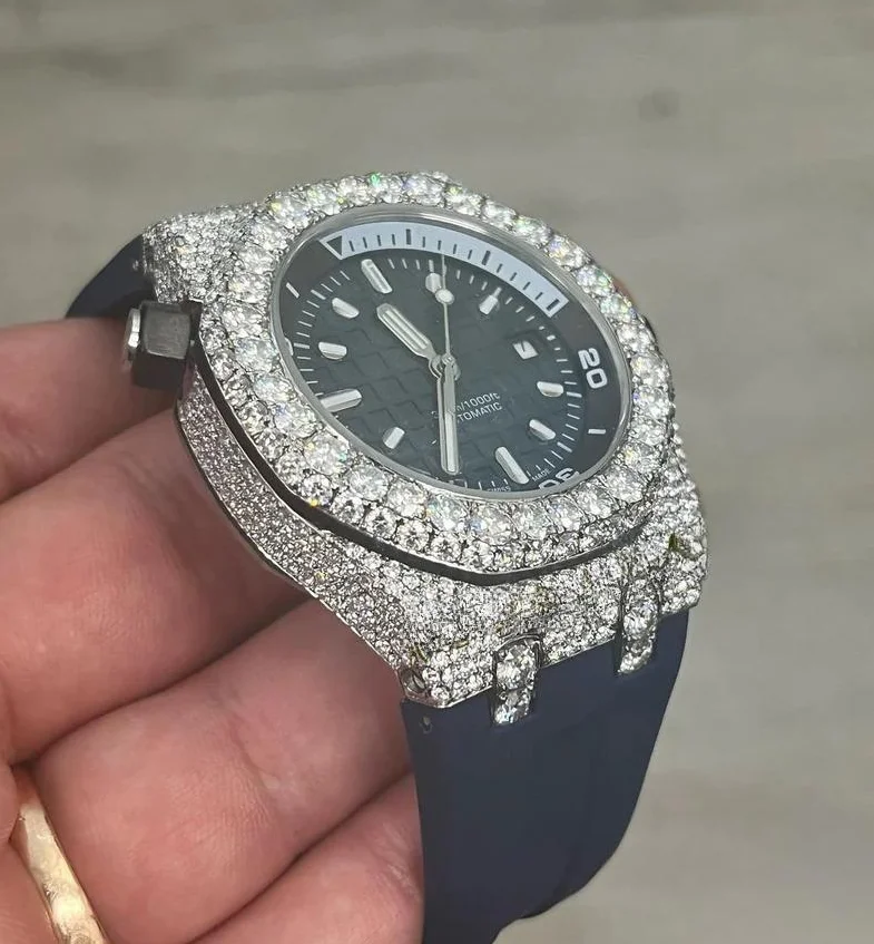 High Quality VVS Moissanite Diamond Hip Hop Stainless Steel Glass Dial Hot Selling Iced Out Unisex Customize Mechanical Watch