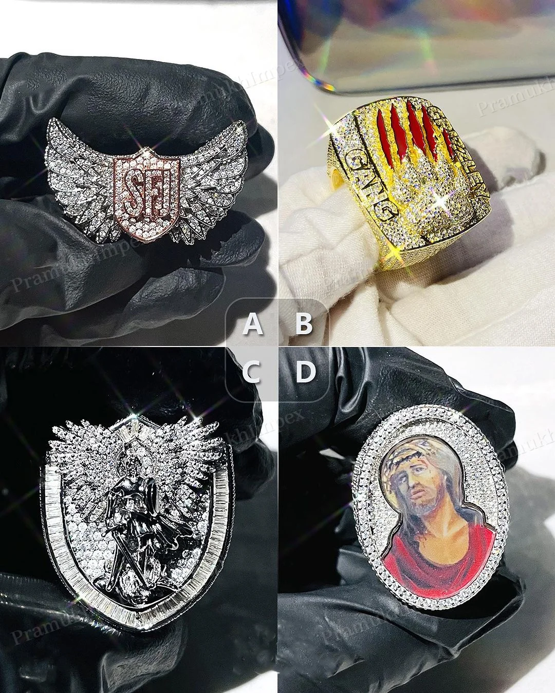 925 Sterling Silver Gold Plated Prong Set Iced New Design Customized Hip Hop VVS Moissanite Rappers Ring Men's