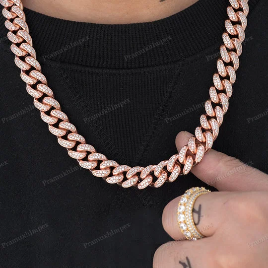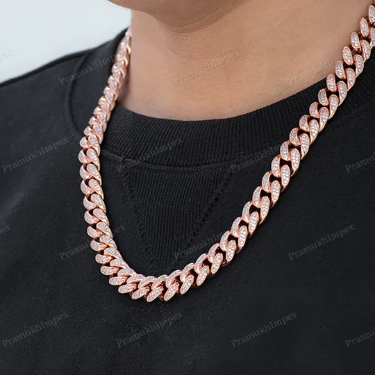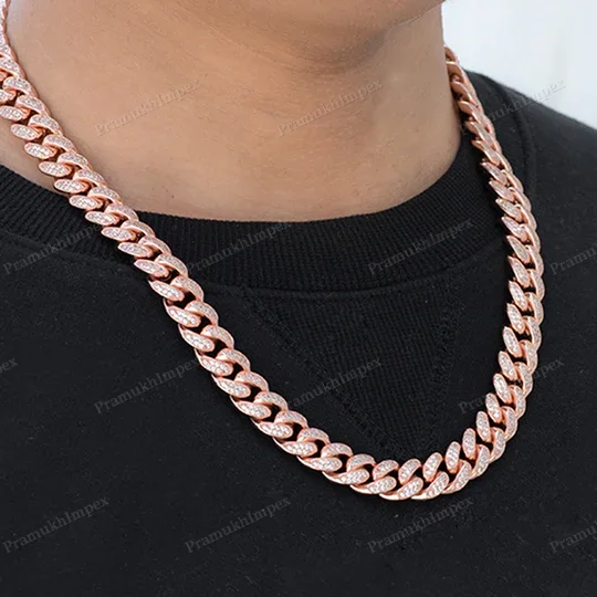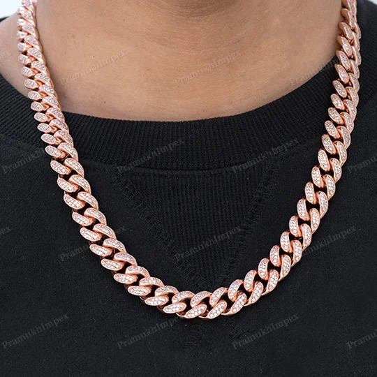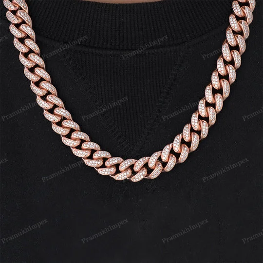 Wholesale Customized 12mm 10/14/18KT Gold Plated Miami Cuban Link Chain Necklace 16-24 Inch Fully Iced Moissanite Cut Diamond
