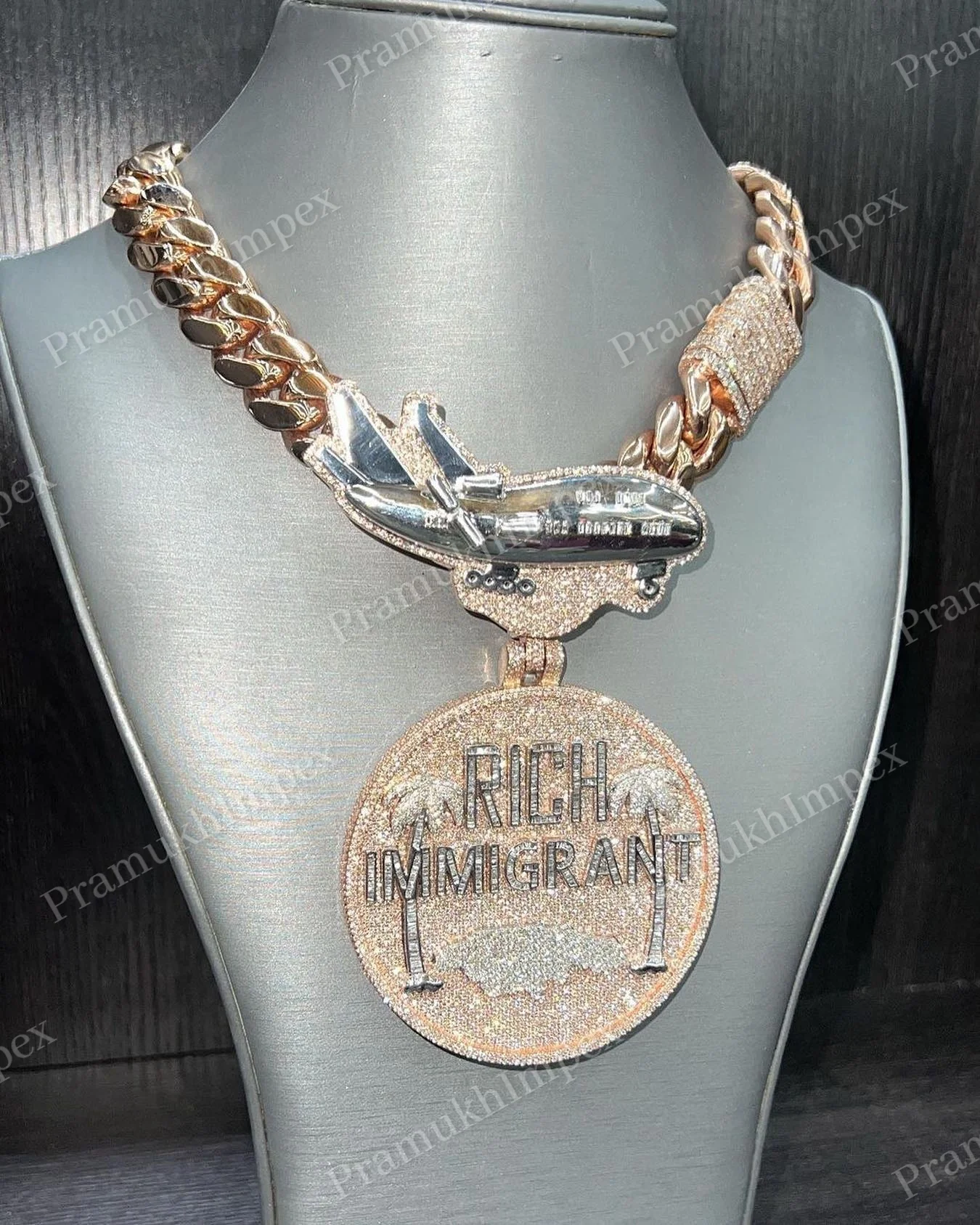Customized S925 Sterling Silver Rose Gold Plated Baguette Cut VVS Moissanite High Quality Fully Iced Claw Setting Hip Pendant