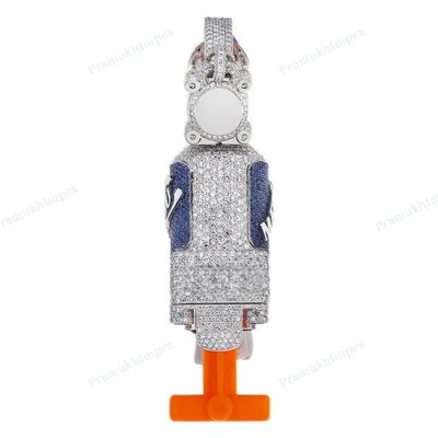 Gun Pendant Ring Iced Moissanite Pave Setting Vibrant Enamel Detailing Sterling Silver Gold Plated Hip-Hop Statement Men Women