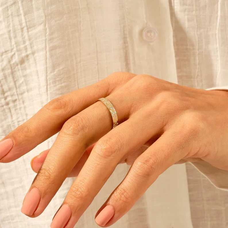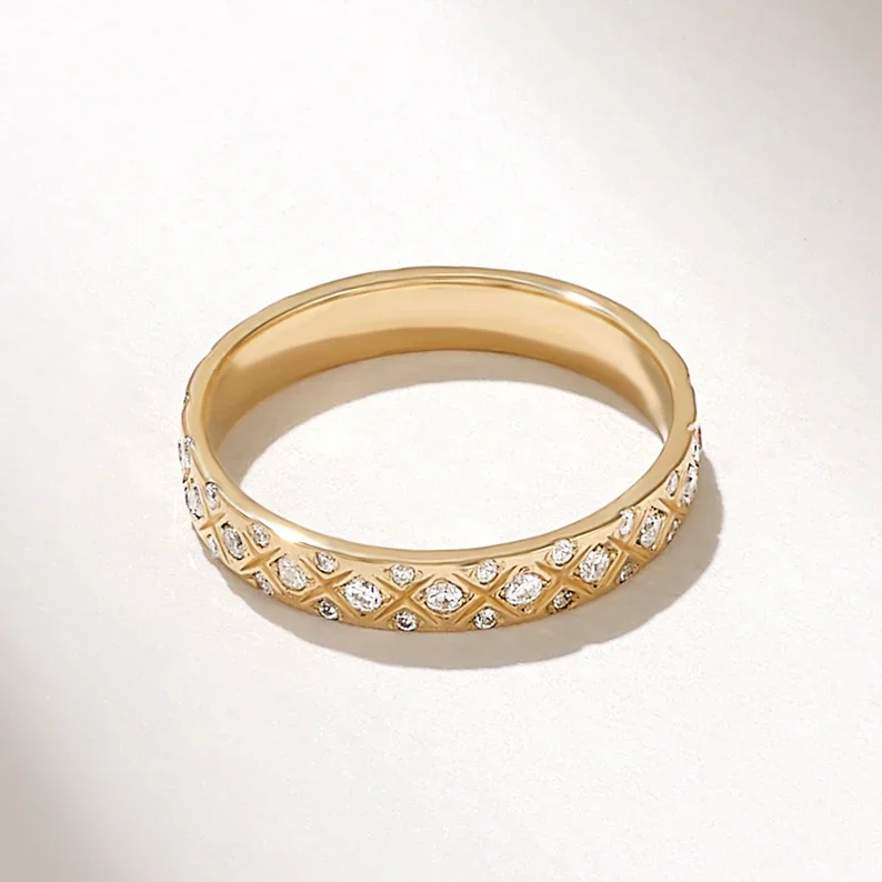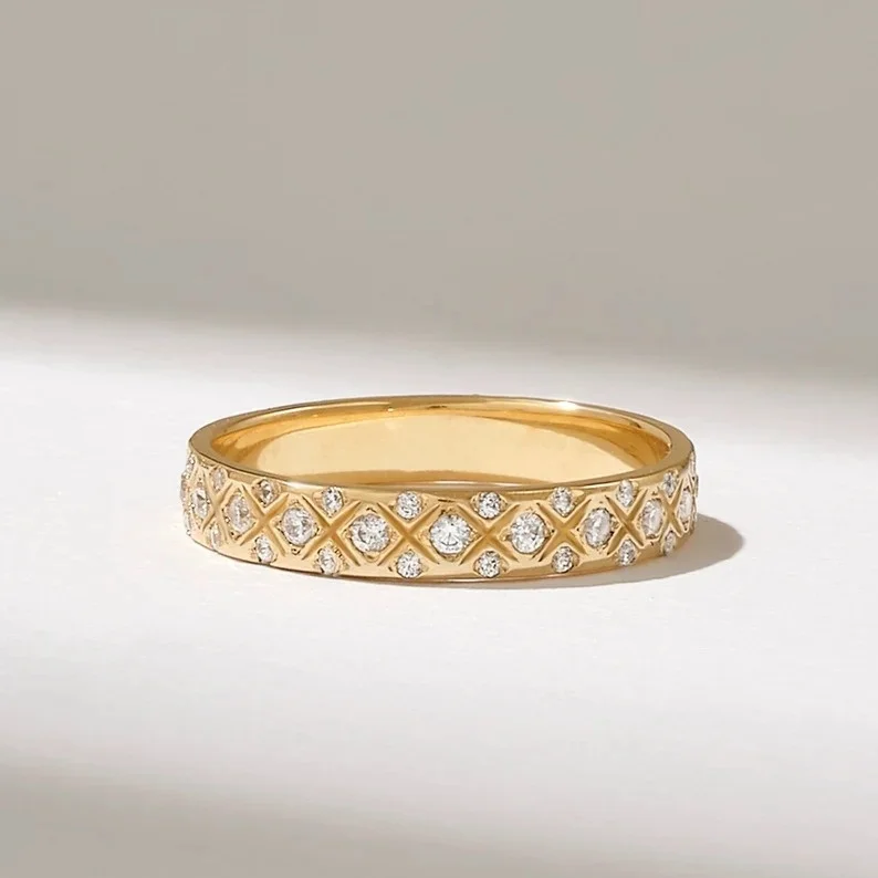 Hot Selling Lab Grown Diamond Vintage Style Criss-Cross Wedding Ring Band 9K-18K Gold Inspired -Certified Diamonds for