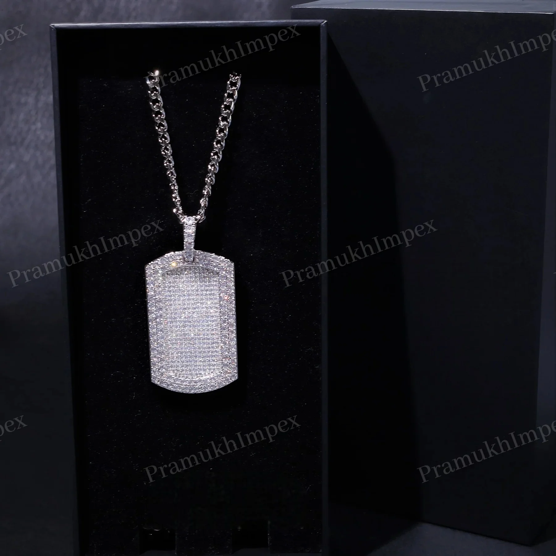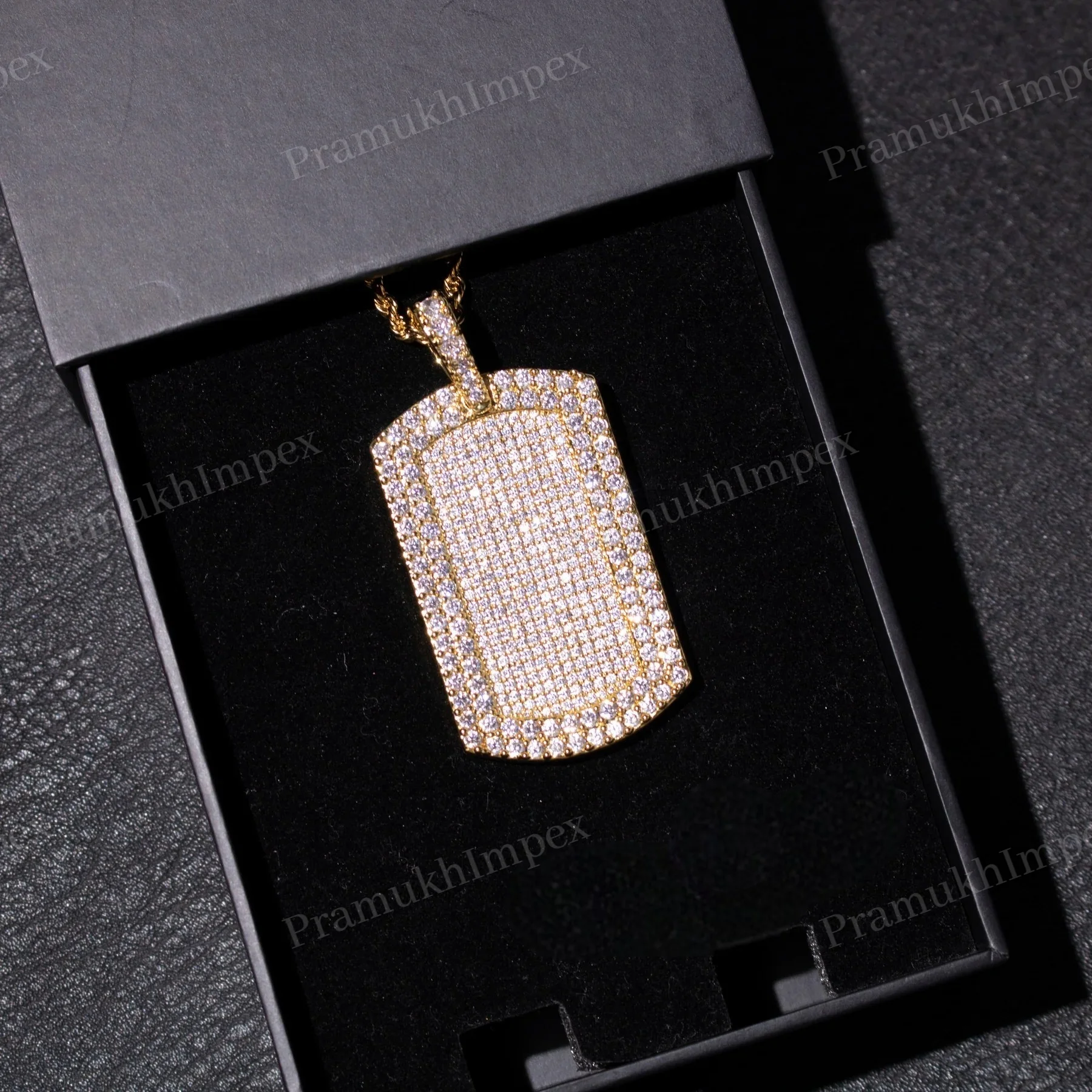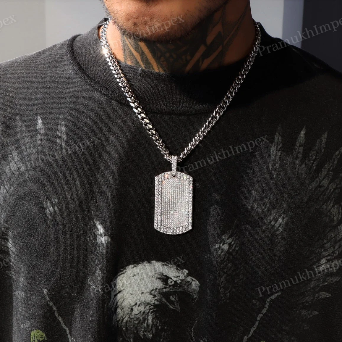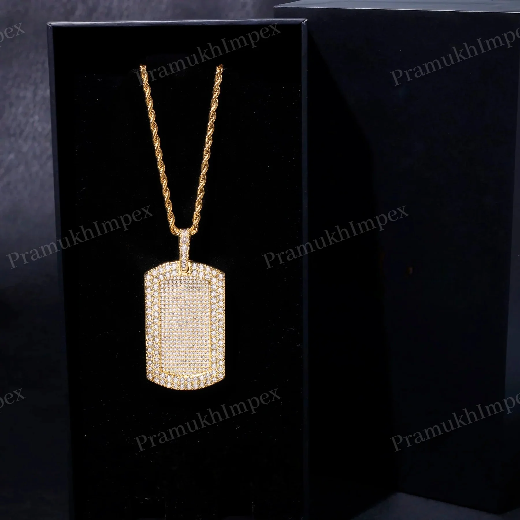 Moissanite Round Cut Dog Tag Pendant Sterling Silver Gold Plated Iced Hip Hop Party Necklace Custom Charm Unisex Statement Piece