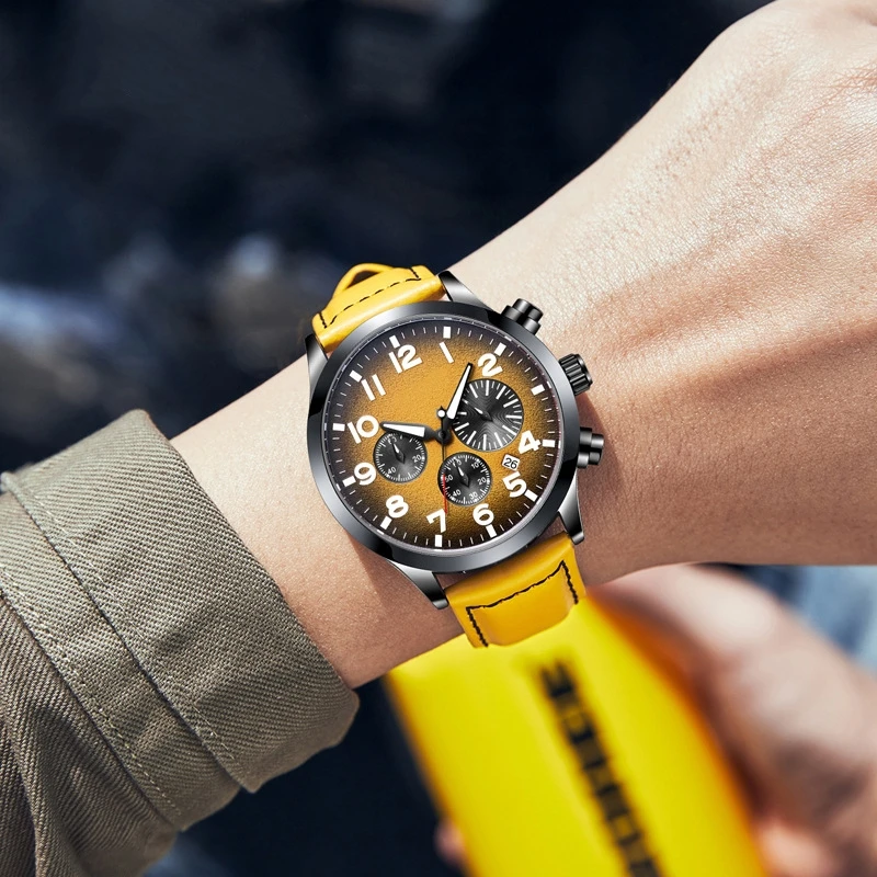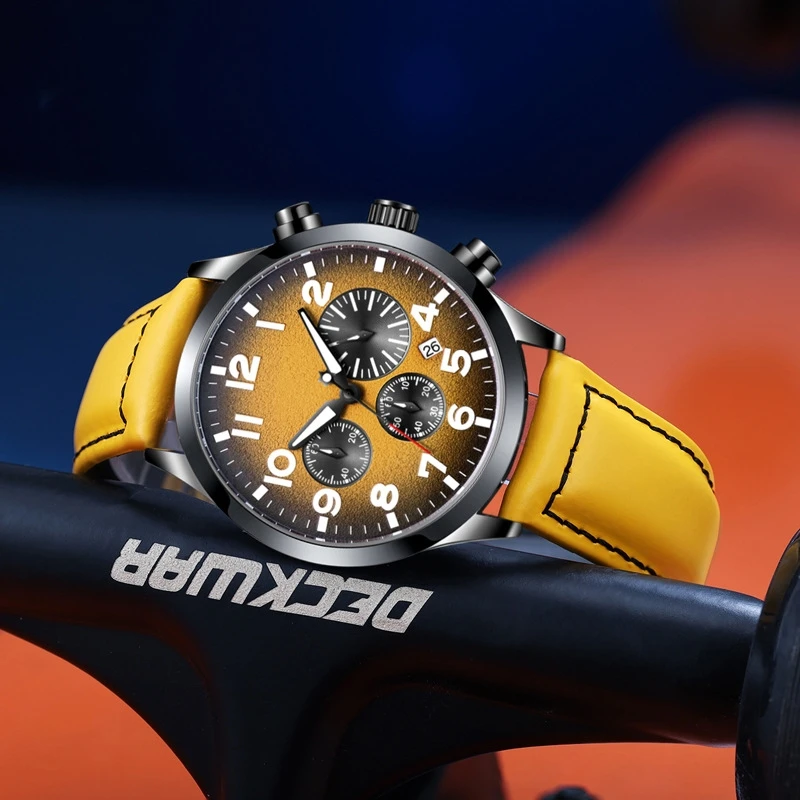 Factory Hot Sale OEM New 6-pin Multi-function Men's Genuine Leather Waterproof Watch Wholesale Fashion Quartz Watches
