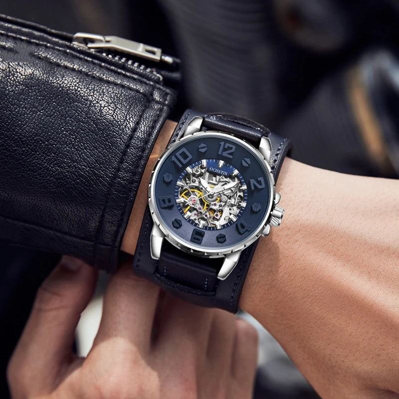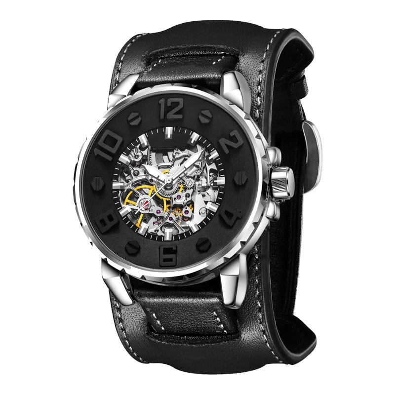Factory Wholesale New Mechanical Hollow Watches Wristband Leather Belt Wristband Mechanical Men's Watch