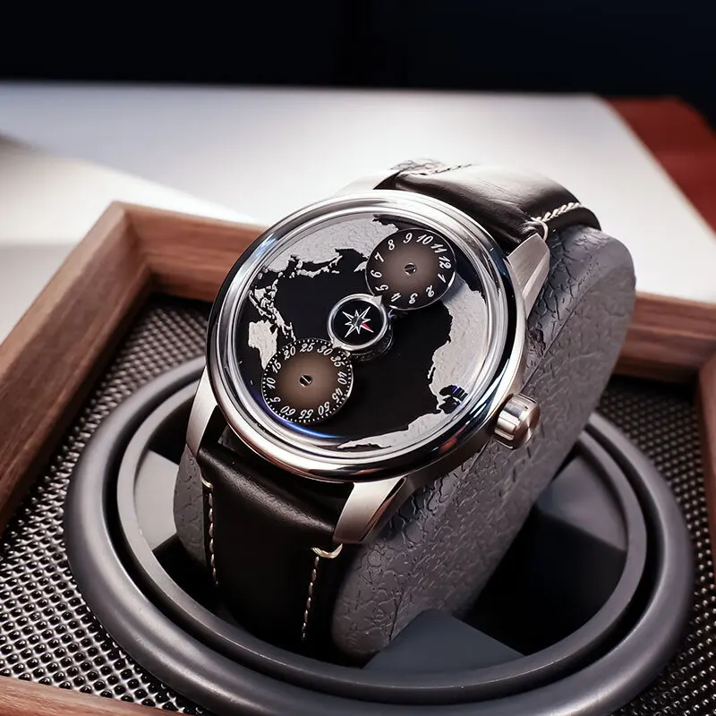 Personalized Genuine Leather Automatic Mechanical Watch Niche Rotating Blue Planet Men's Watches Luminous Moving Stars