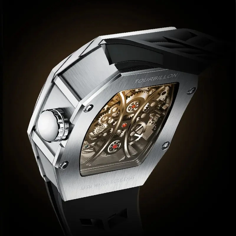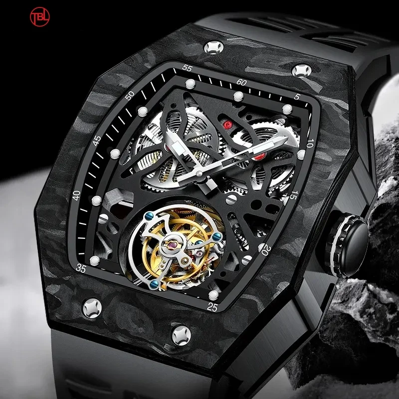 Fashion Luxury Men's True Tourbillon Mechanical Watch 5ATM Waterproof Carbon Fiber Hollow Super Luminous Tourbillon Watch