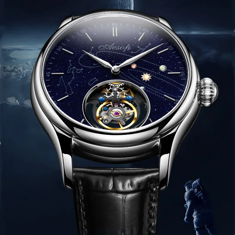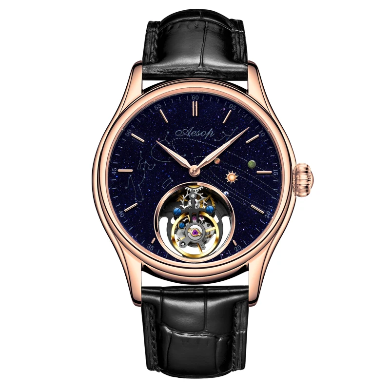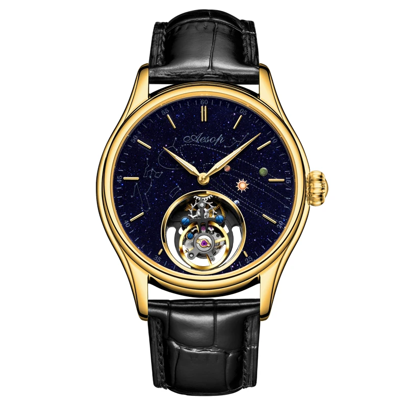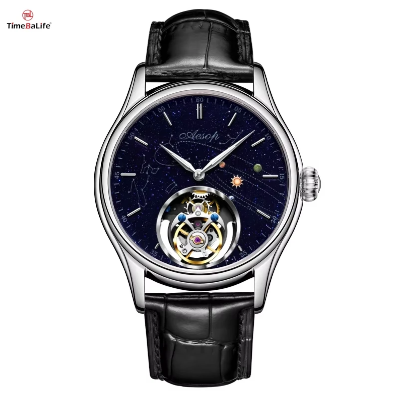 Factory High Quality Direct Supply Men's Manual Tourbillon Celestial Luxury Fashion Black Automatic Mechanical Watch