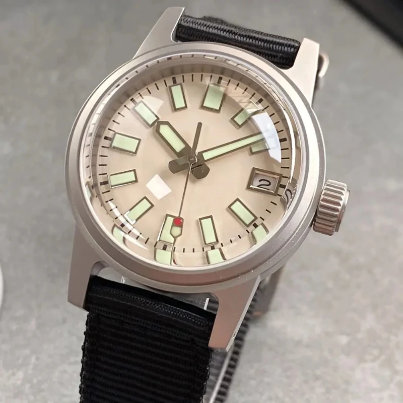 Custom Logo Dome Sapphire Glass 36mm NH35A Automatic Mechanical Men Watch 5BAR Waterproof Dive Wristwatch Green Luminous
