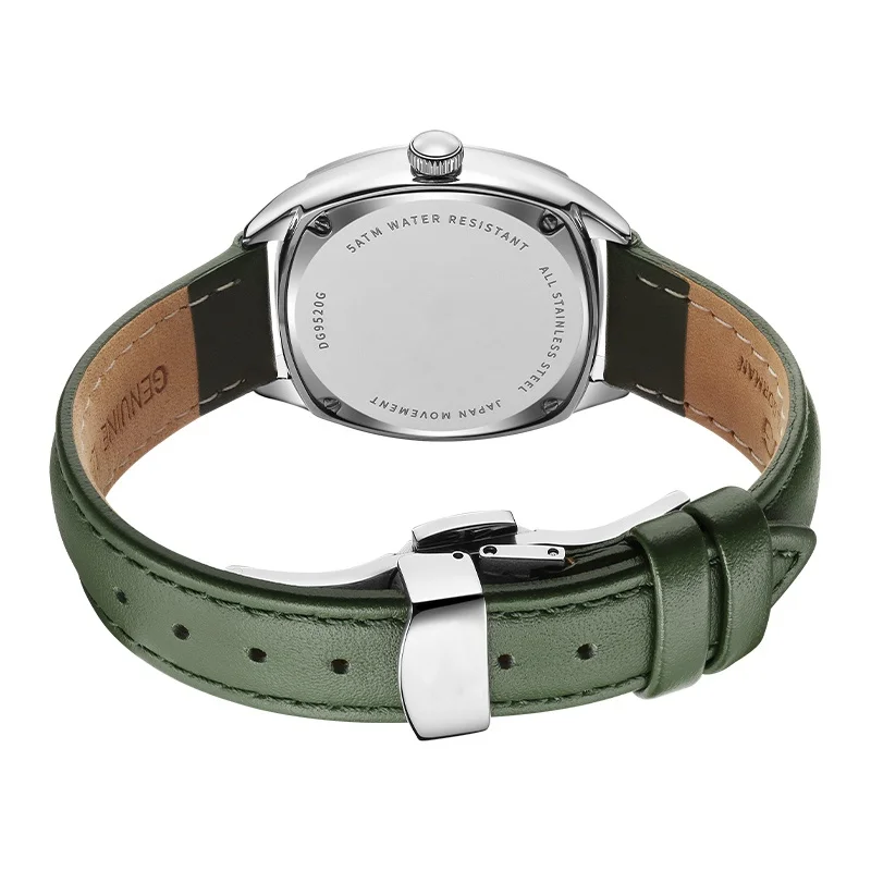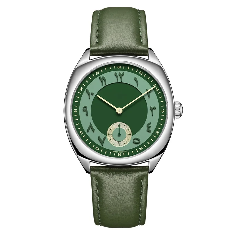 New Luxury Mens Arabic Numeral Japanese Quartz Stainless Steel Case Leather Strap Green Dial Man and Woman Couple Watch