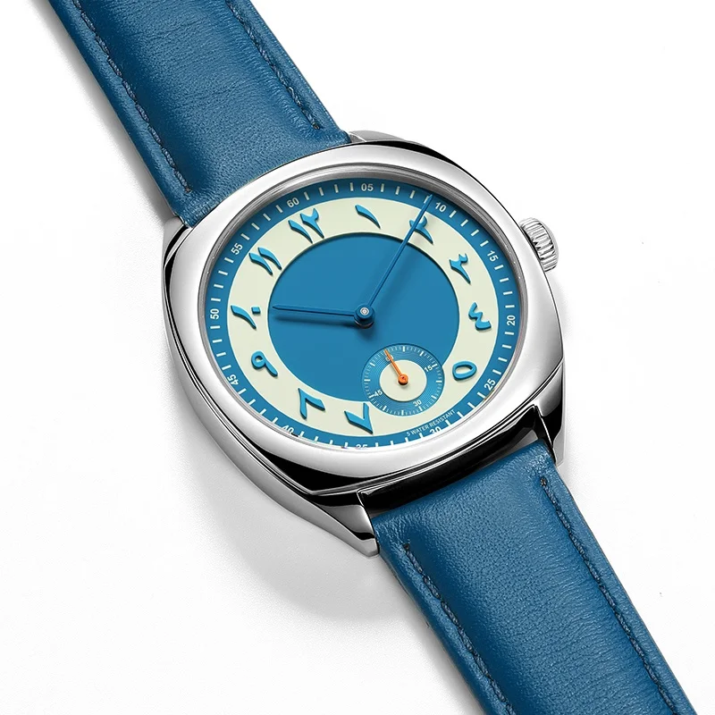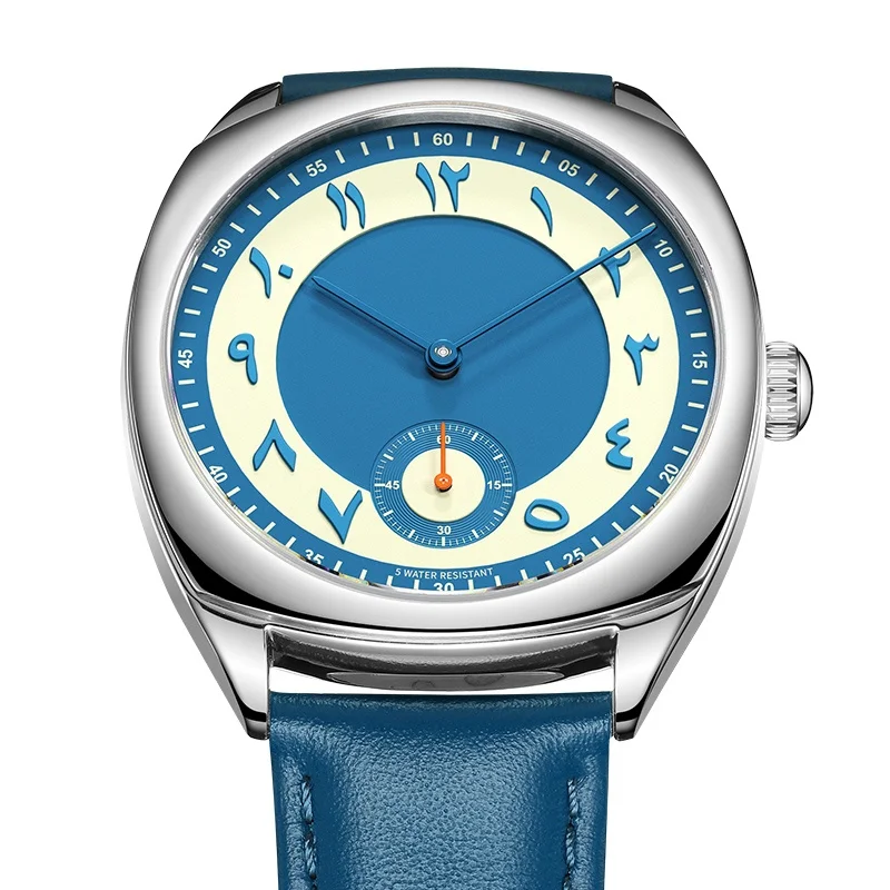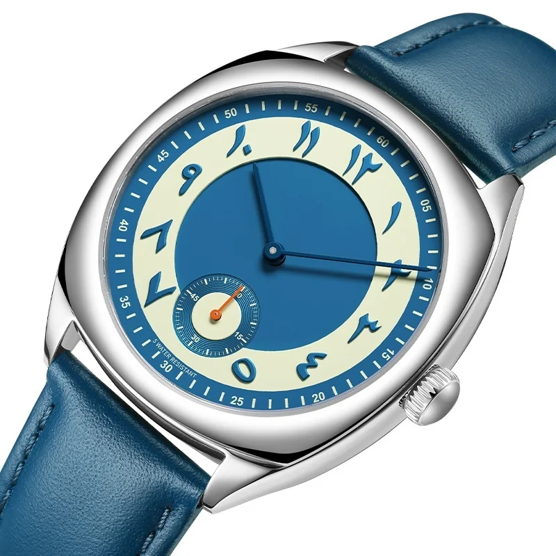 Newest Fashion Japanese Quartz Couple Watch Stainless Steel Case Waterproof Leather Strap Blue Arabic Numeral Dial Men's Watch