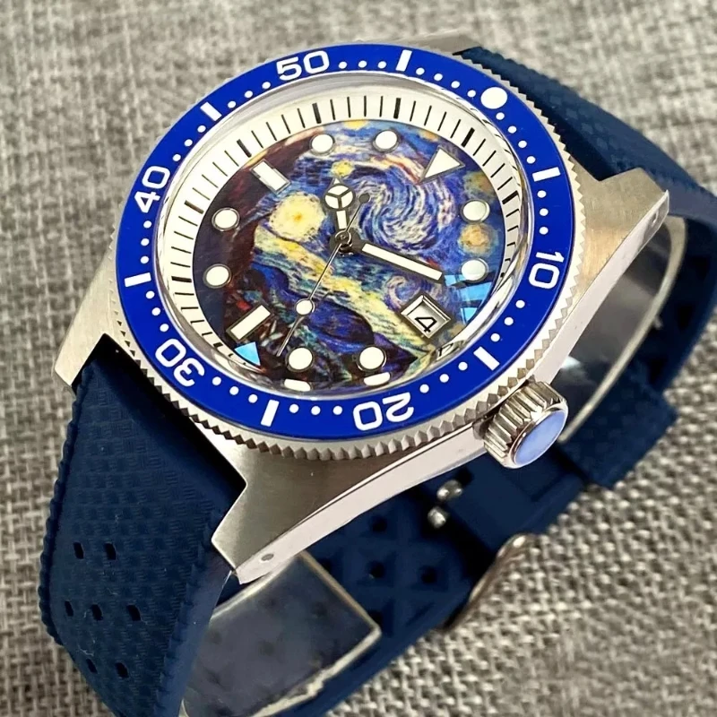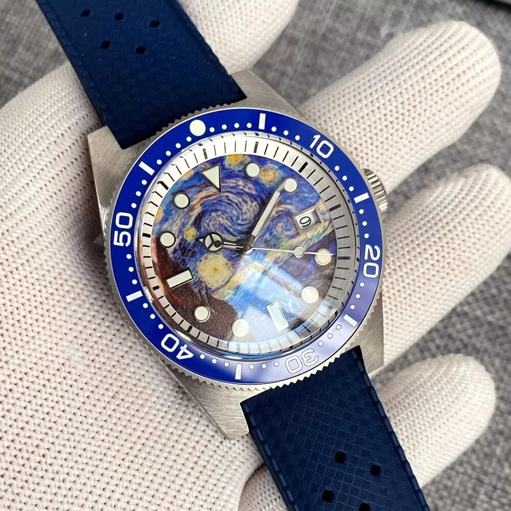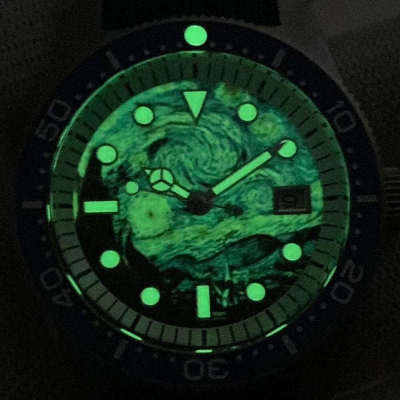 ODM Custom AR Sapphire Glass Full Luminous Kanagawa Surfing Dial 10ATM Diving Mens Watch NH35 Automatic Wristwatch Luminous Dial