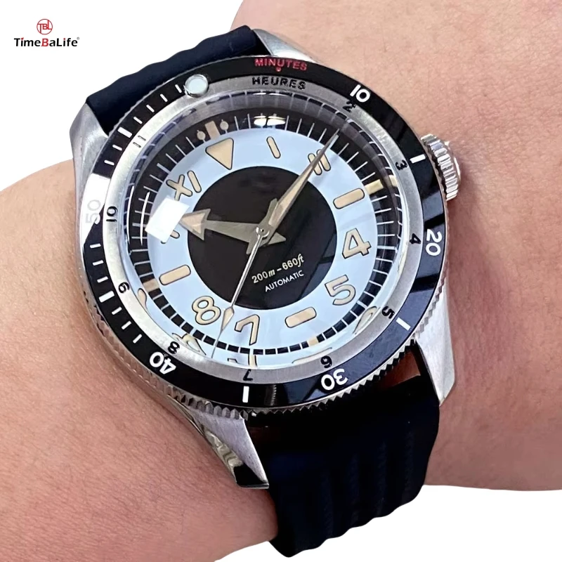 ODM Custom Vintage Dial Dome Bow Sapphire Glass NH35A Movt 120 Clicks Bezel 20BAR Diving Mechanical Men Business Watch