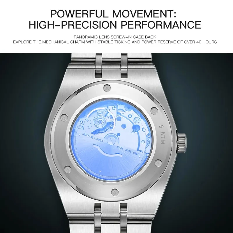 Custom Logo Luxury Brand Men's Mechanical Business Watch Automatic Calendar Date Wristwatch 50M Waterproof Reloj Hombre Miyota