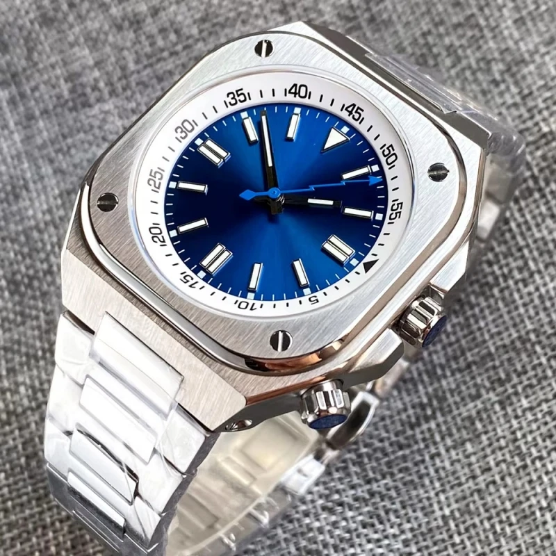 OEM Custom Stainless Steel 42mm Square Case Blue Men's Watch with Japan NH35 Movement Waterproof Automatic Watches ODM