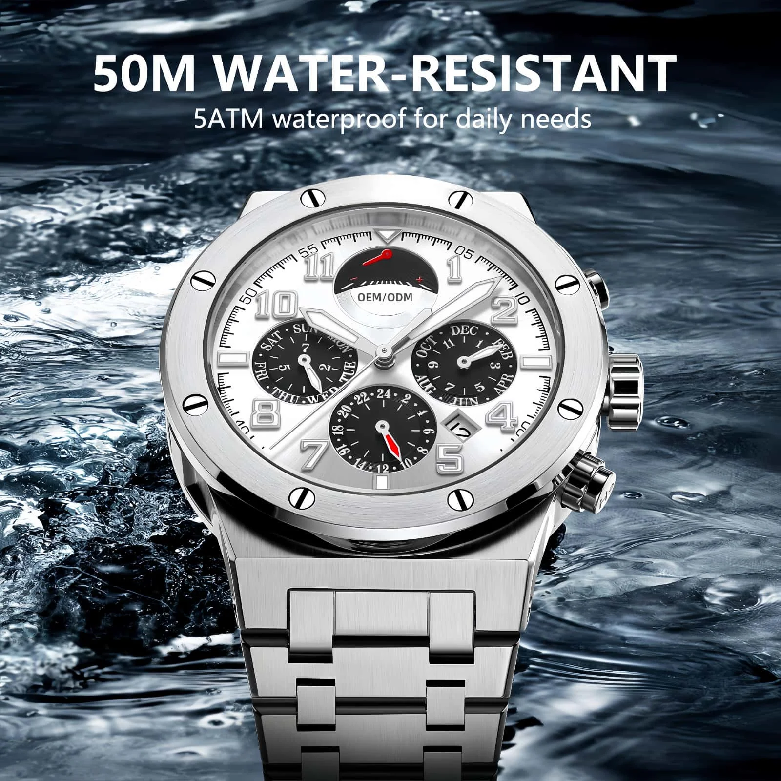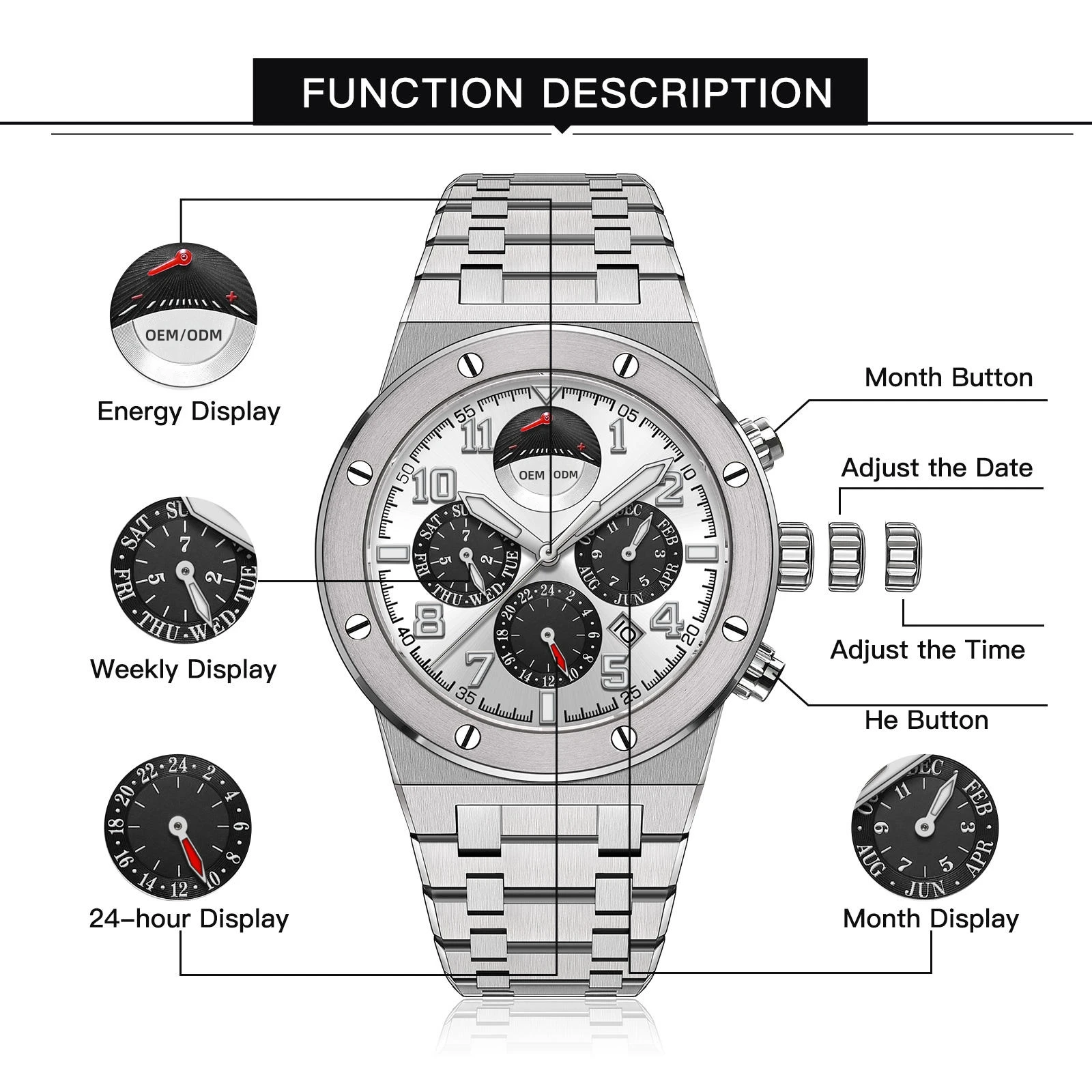 Month Week 24 Hours Miyota 9100 Automatic Multi-function Mechanical Chronograph Watch for Men with Custom logo Design