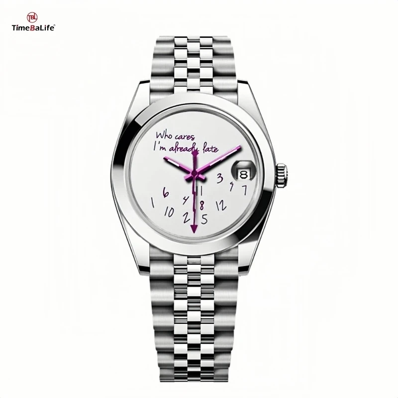 Custom Who Cares I Am Already Late Dial Seik NH35 Men Watch 39mm Automatic Mechanical Movement Waterproof Sapphire Wristwatch