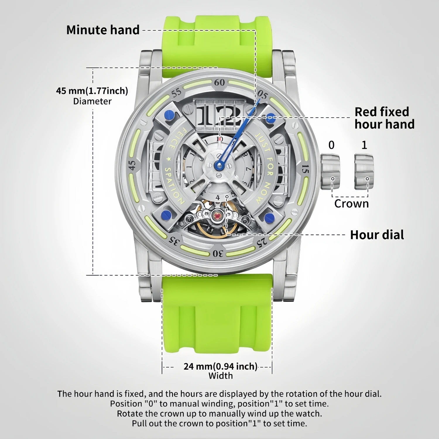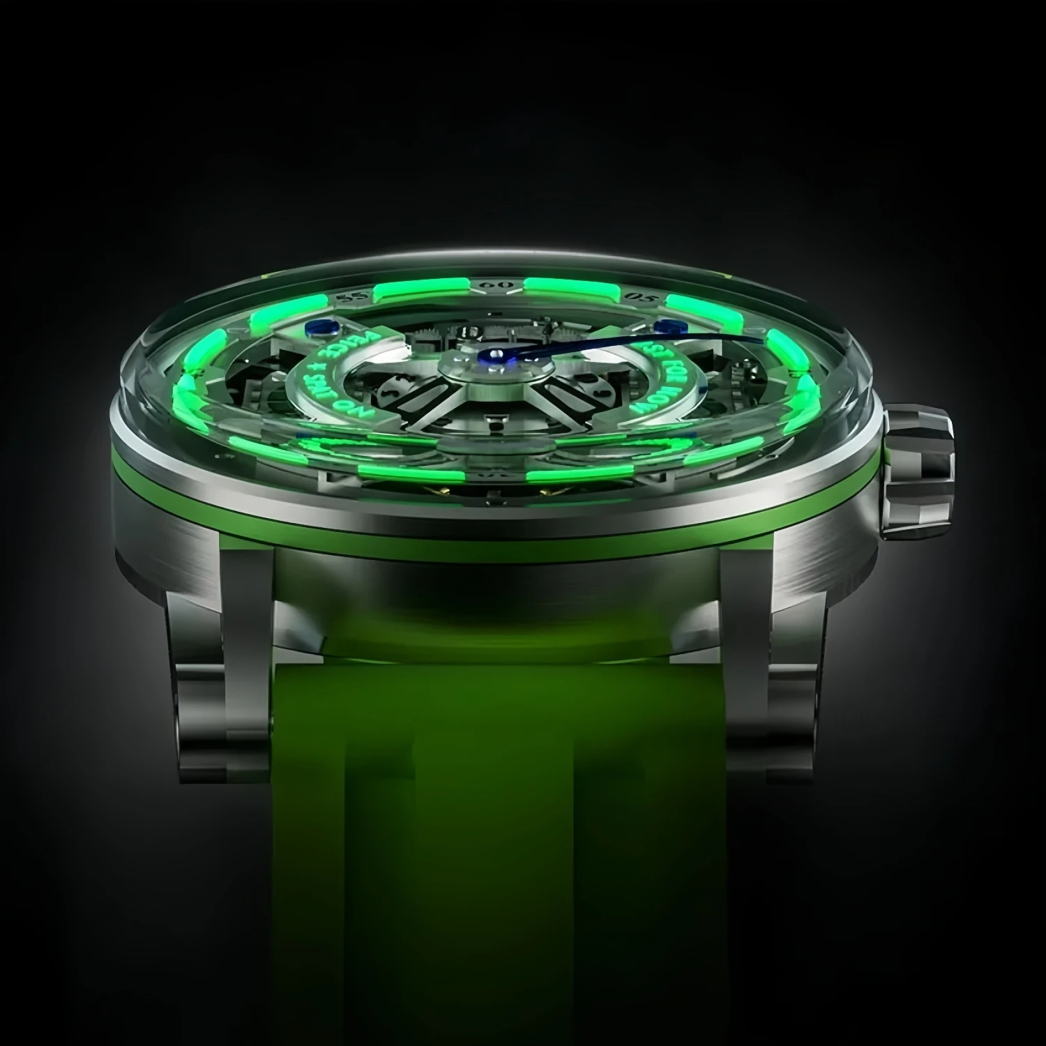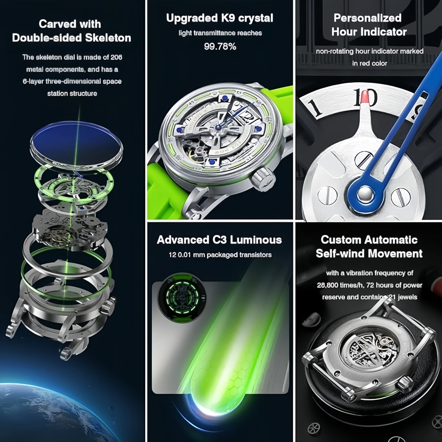 Custom Logo Luxury Skeleton Hangzhou Mechanical Watch Stainless Steel K9 Crystal Mirror Celestial Orbit Men's Luminous Watches