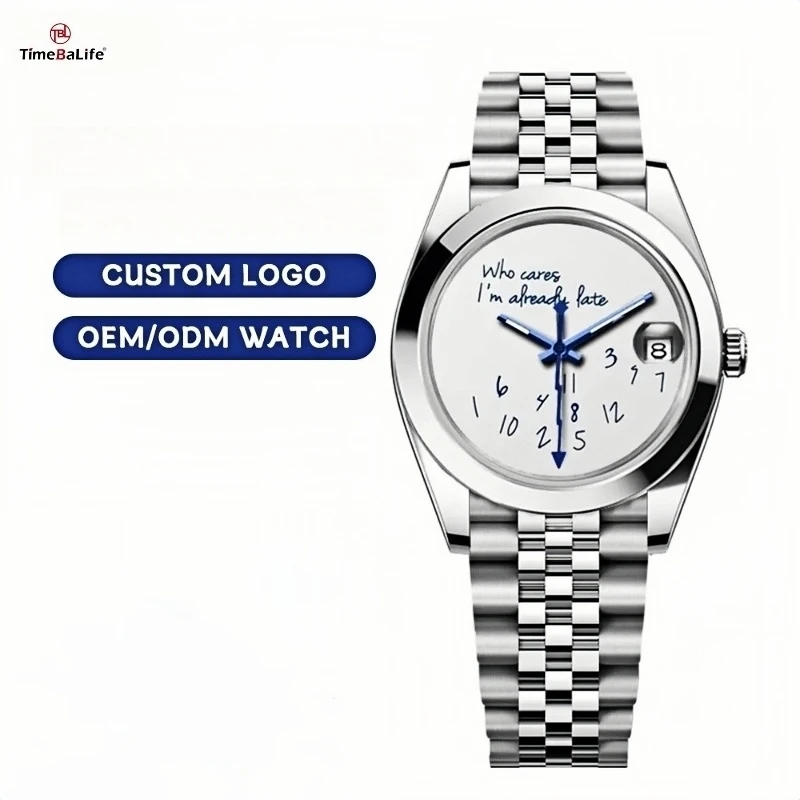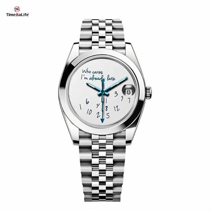 Custom Who Cares IM Already Late Watch 316L Stainless Steel 36/39mm DIY Dial Mans Watch Waterproof Wristwatch Quartz Movement